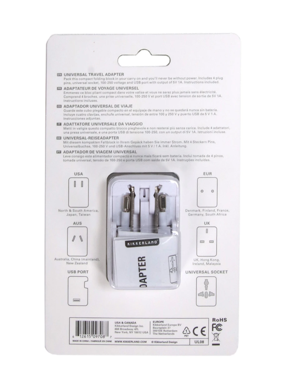 Cet adaptateur électrique de voyage Kikkerland s’utilise simplement en dépliant les embouts nécessaires en fonction des normes électriques du pays visité. Bien pensé, les embouts se rangent facilement. Avec son format compact, il peut se glisser dans un sac à dos, un cabas ou une valise sans prendre trop de place. Il est idéal pour pouvoir l’emporter avec soi en toutes circonstances et charger son portable partout sans difficulté à l’aide de son port USB intégré. Une fois rentré chez vous, il vous sera encore possible d’utiliser vos accessoires venus du monde entier.
