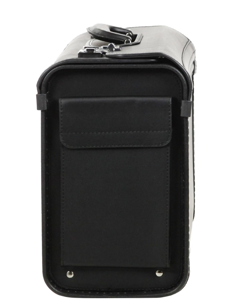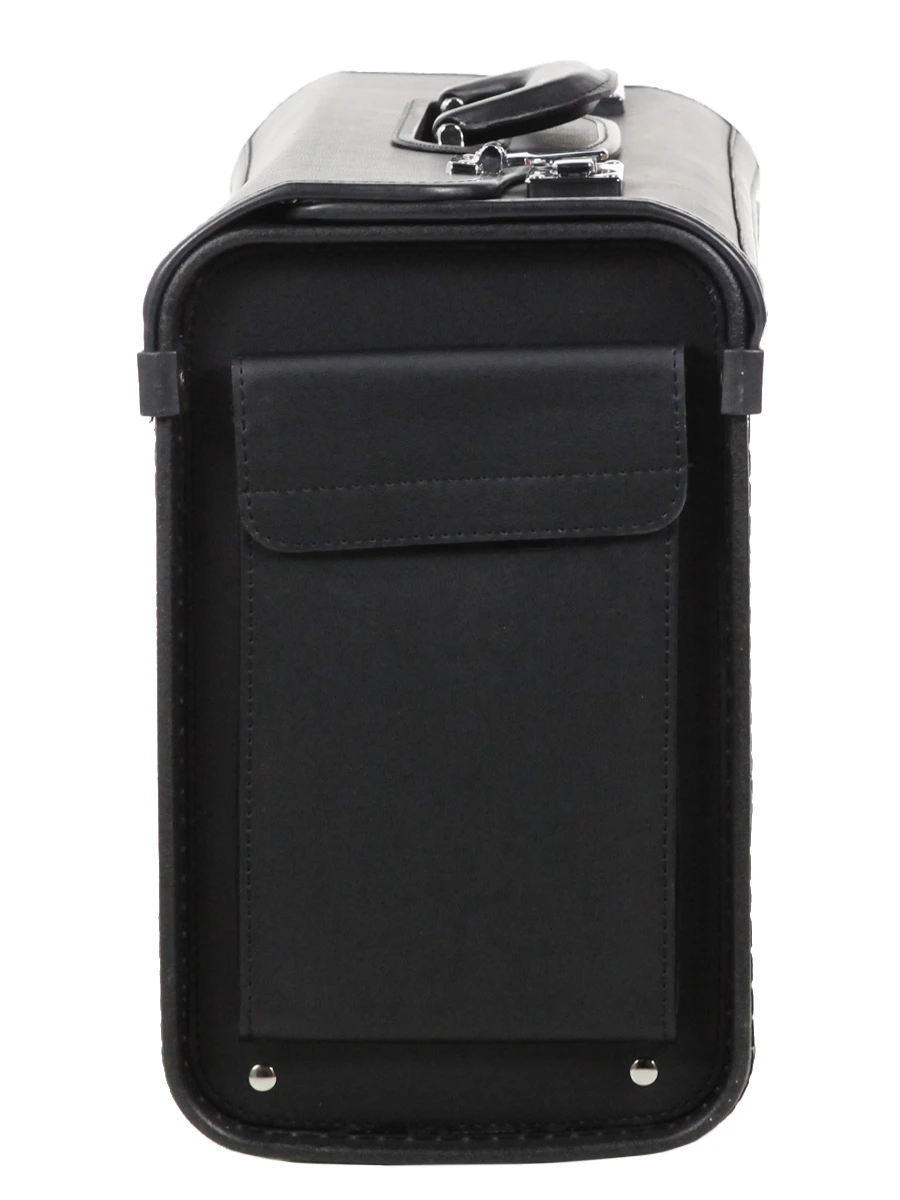 Cette serviette Davidts Synthetic se ferme à l’aide d’attaches sur le dessus, lesquelles sont sécurisées par des serrures à code. Elle se déplace avec élégance et simplicité à la main, grâce à une poignée de portage. Côté extérieur, on trouve 2 grandes poches latérales pour garder à portée de main diverses affaires, ainsi que des rivets de protection sur le dessous.