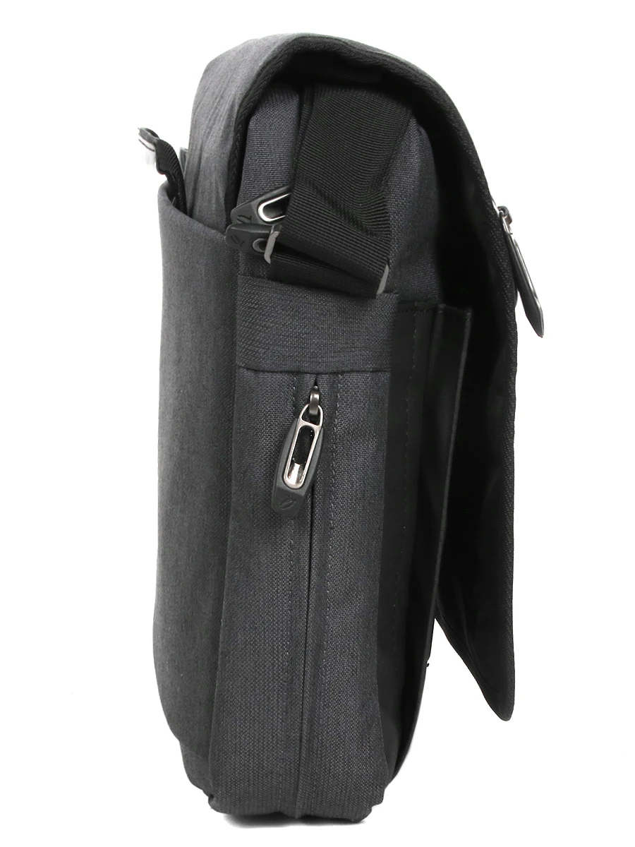 La besace Airtex Business se porte avec confort Ă l’Ă©paule grâce Ă sa bandoulière rĂ©glable dotĂ©e d’un coussin anti-frictions. Pour la porter Ă la main ou la suspendre Ă une patère, elle est aussi dotĂ©e d’une petite poignĂ©e haute. A l’arrière, sa poche peut ĂŞtre transformĂ©e en passant pour trolley en en dĂ©zippant le fond pour encore plus de praticitĂ©. Elle se ferme au moyen d’un rabat Ă attache magnĂ©tique et d’une fermeture Ă glissière pour une protection efficace de son contenu contre le pluie. Sa doublure textile forme un rempart supplĂ©mentaire contre l’humiditĂ© ambiante.