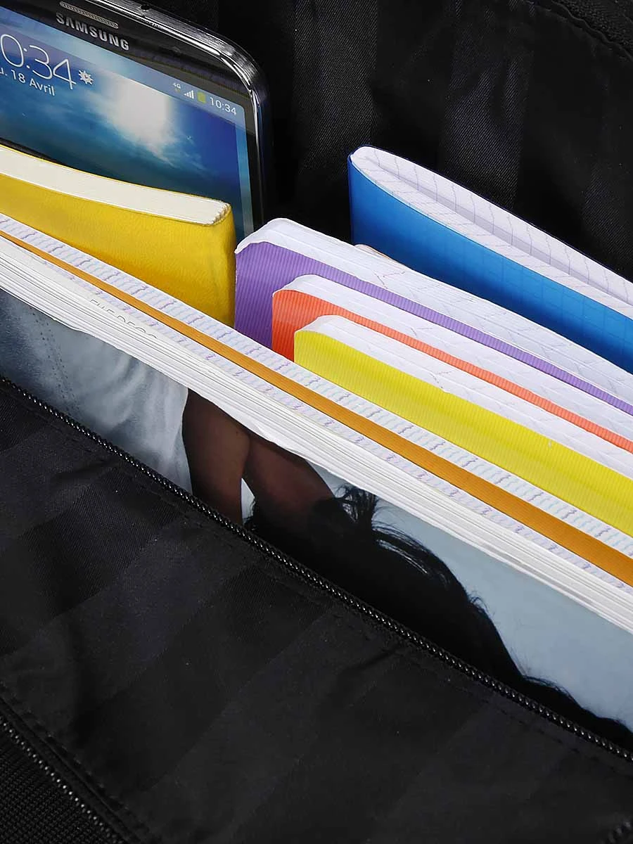 La besace Ă©lĂ©gante Chabrand Rome II dispose d’un compartiment pouvant contenir une multitude de documents au format A4. Trois passants pour stylo et trois poches plates permettent d’organiser petits carnets, cartes, batterie nomade (non fournie) et tĂ©lĂ©phone portable muni de sa coque par exemple. En face, une poche zippĂ©e est idĂ©ale pour des petits objets importants tels que le portefeuille par exemple. A l’extĂ©rieur, elle est Ă©quipĂ©e de trois poches : une sur le rabat, une sous le rabat, et une Ă l’arrière pour pouvoir faire le plein de livres ou emporter des accessoires multiples par exemple.