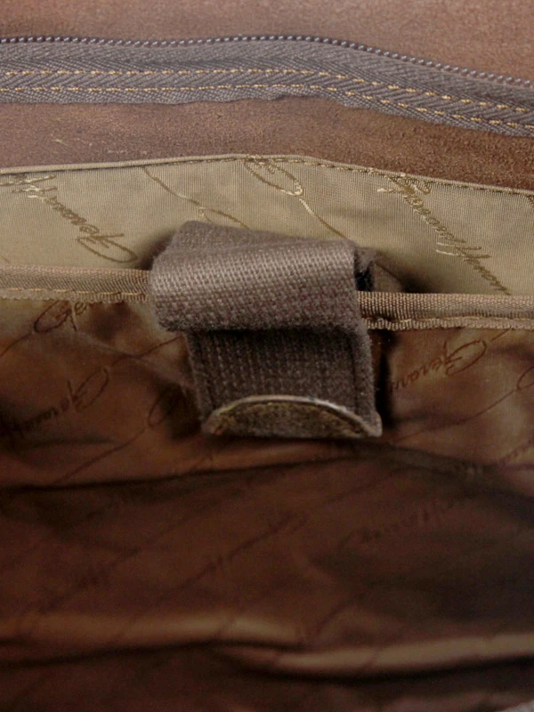 A l’intérieur, la besace Gérard Henon Outland 39.5 cm dispose d’un compartiment équipé d’une poche matelassée pour ordinateur 14 pouces, et également d’une poche pour téléphone portable, de compartiments pour cartes de visite et de poches pour les stylos. A l’extérieur, on trouve sous le rabat deux petites poches zippées, ainsi qu’une large poche zippée au dos.
