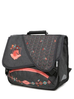 Les deux compartiments du cartable fillette Cheval, compatibles avec les formats A4 et 24 x 32 cm, permettent de répartir les classeurs à anneaux, cahiers et manuels scolaires, aux côtés de la trousse et de l’agenda. Très pratique, une poche spéciale permet d’y glisser la règle pour ne jamais l’égarer. La large poche frontale zippée loge les plus petits objets : par exemple l’étui à lunettes ou une barre de céréales pour le creux de la matinée. Une jolie breloque en métal ornée d’un cheval faisant office de tirette facilite l’ouverture du zip de cette poche. Le porte-emploi du temps placé sous le rabat permet de préparer facilement chaque soir ses affaires du lendemain. Un porte-adresse est prévu pour limiter les risques de perte du cartable.