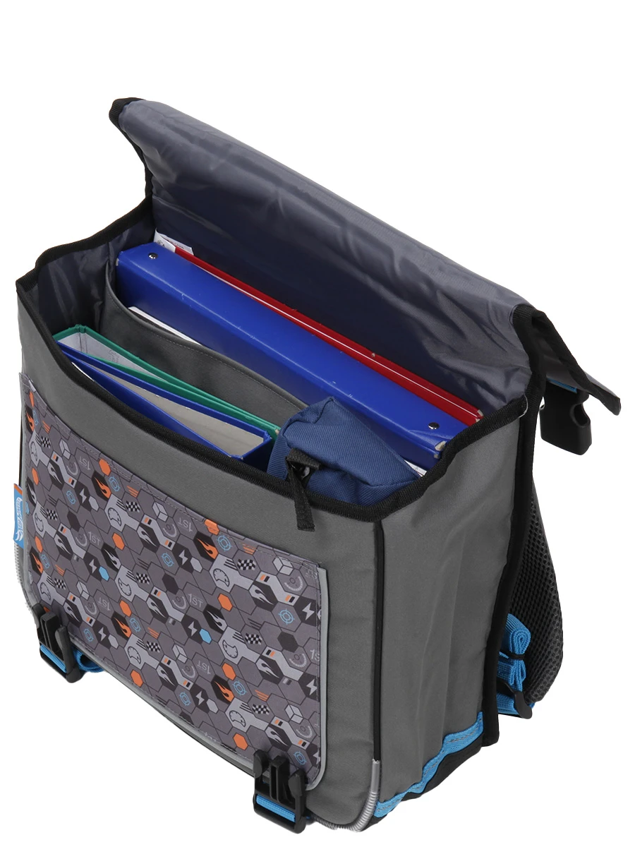 Pour faciliter le rangement des grands cahiers, les 2 compartiments doublés du cartable Hot Wheels Fast sont compatibles avec le format A4. Livres, carnets de note, feuilles volantes et trousse peuvent y être glissés sans difficultés. Pour sérier à part un trousseau de clés, un encas ou encore un petit trésor, il possède en sus une large poche frontale.