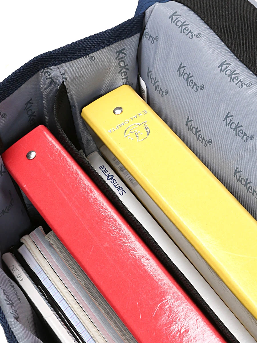 Le cartable garçon Kickers Boy Tiger s’ouvre sur deux compartiments doublés compatibles avec les formats A4 et 24 x 32 cm pouvant loger les cahiers, les classeurs à anneaux, les manuels, l’agenda et une trousse. Pratiques, une poche spéciale est réservée à la règle et un porte-emploi du temps est situé sous le rabat. Deux poches frontales ouvertes permettent de loger à part les plus petits accessoires tels que le matériel de géométrie, le paquet de mouchoirs ou une barre de céréales pour le petit creux de la matinée.