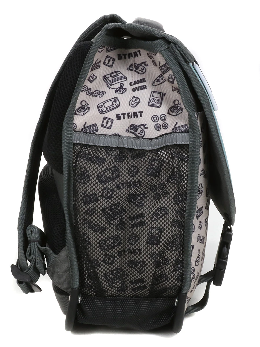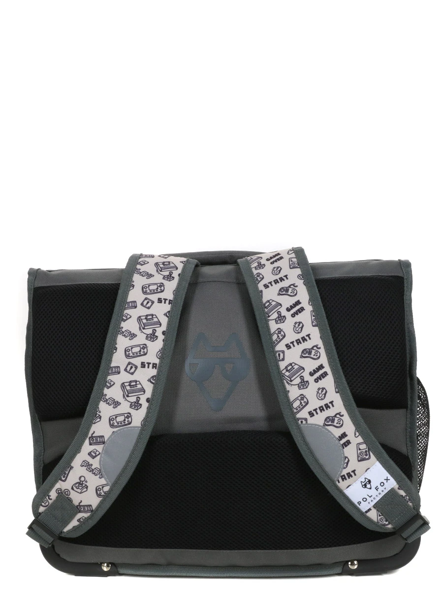 Le cartable Réversible Pol Fox Gamer 41 cm fera de la rentrée un moment de joie pour les gamers en herbe qui pourront afficher fièrement leur passion jusque dans la cour de récréation. Rien n’a été oublié pour évoquer l’univers des jeux vidéo : le revêtement est parsemé de dessins de consoles, joysticks et souris d’ordinateur et le rabat bi-face présente d’un côté une manette de jeu rétro, sous la forme d’un gros empiècement plastique en relief, et de l’autre, quatre symboles colorés représentant les boutons de cette manette. Le style de ce cartable séduit les enfants autant que sa fonctionnalité, son ergonomie et sa solidité séduisent leurs parents. Côté sécurité, ces derniers apprécieront également les détails réfléchissants disposés sur les bretelles, à l’avant et sur un côté
