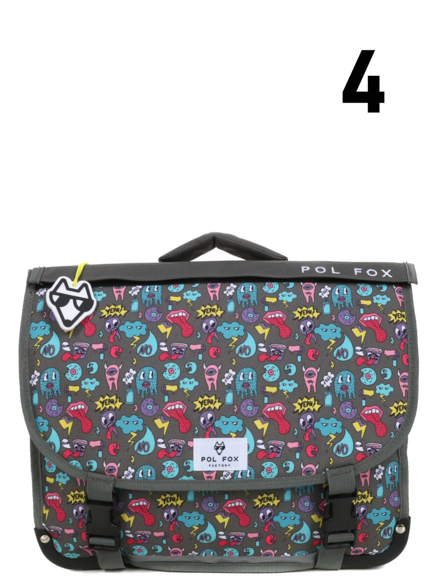 Le cartable Réversible Pol Fox Rider 38 cm donne du peps aux journées d’école avec ses amusants motifs de gentils monstres multicolores. Son rabat réversible est orné d’un imprimé évocateur de l’univers du vélo motocross et du graff qui plaira aux enfants les plus aventureux. La fonctionnalité et le confort sont aussi au rendez-vous grâce à ses différents espaces de rangement et ses multiples renforts en mousse. Pour des trajets en toute sécurité, on apprécie la présence de détails réfléchissants.