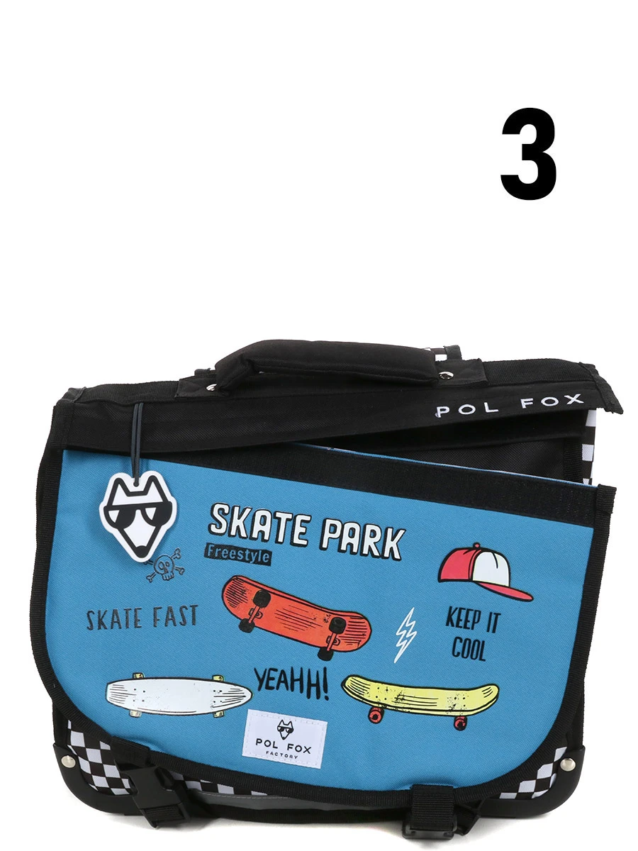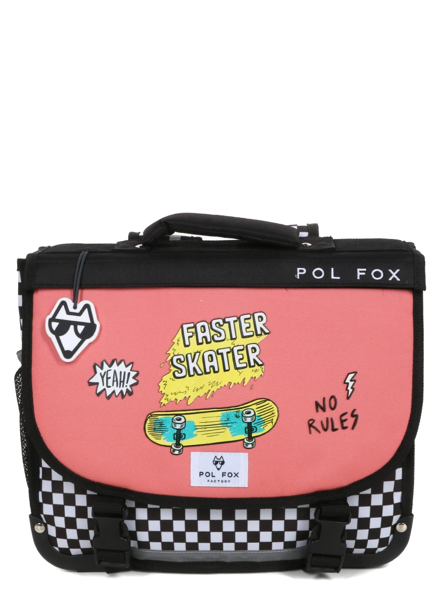 Le cartable Réversible Pol Fox Skate 2 – 35 cm est parfait pour filer à l’école en skateboard ! Dès le CP et le CE1, les jeunes adeptes de planches à roulettes arboreront avec plaisir ce cartable aux couleurs de leur loisir préféré. Selon les jours, ils choisiront l’un ou l’autre côté de son rabat réversible, orné de dessins rappelant l’ambiance du skatepark. Ce cartable soigne son style sans oublier l’essentiel : fonctionnalité, confort et durabilité sont aussi au rendez-vous, ainsi que la sécurité grâce à l’ajout de détails réfléchissants.