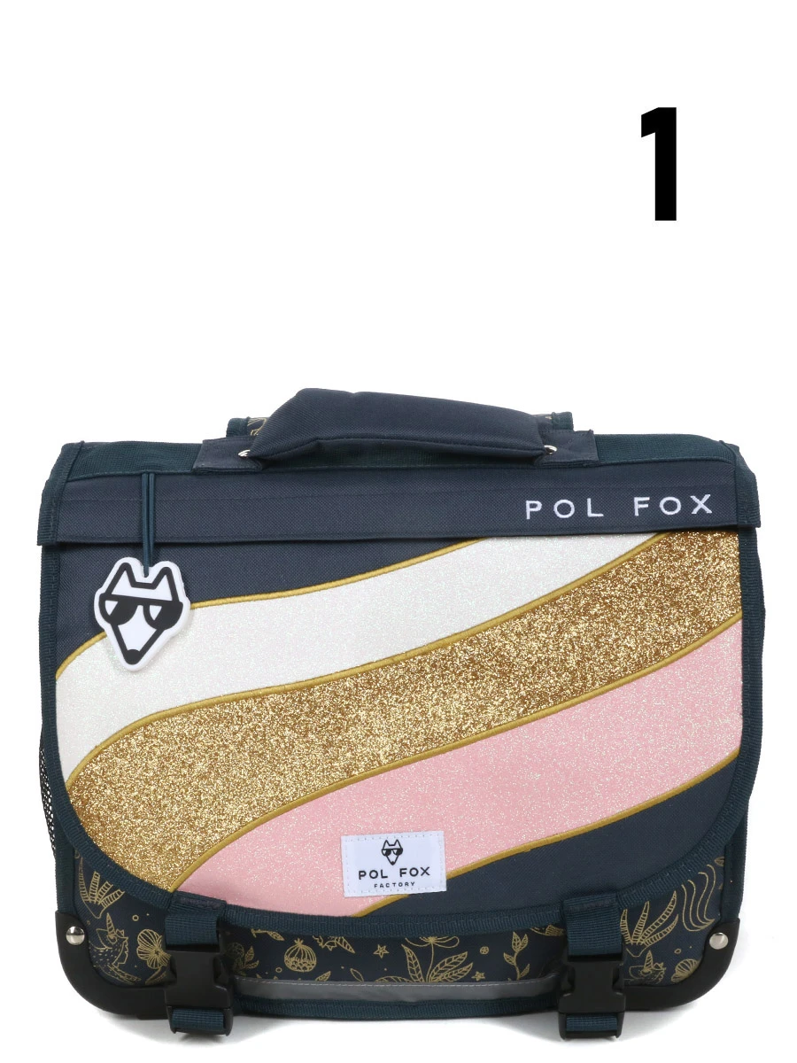 Le cartable Réversible Pol Fox Wonderland 35 cm est le cadeau idéal de rentrée en CP et CE1 pour les petites filles d’un naturel rêveur qui ne sont pas pressées de quitter le cocon familial. Evocateur d’histoires merveilleuses, il affiche un arc-en-ciel de couleurs tendres et de jolies licornes dorées galopant sur son fond bleu-vert. Ludique, le rabat à double face se retourne par un système de fixation à scratch. Sous son allure fantaisiste, le cartable fait preuve de sérieux en matière de fonctionnalité, d’ergonomie et de durabilité. Surtout, il ne néglige pas la sécurité, grâce à ses détails réfléchissants.