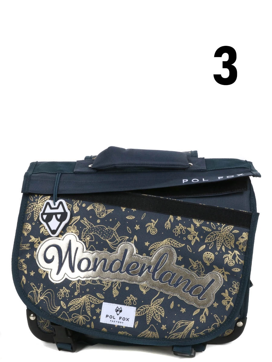 Le cartable pour fille Pol Fox Wonderland dispose d’un compartiment unique, suffisant pour emporter le nécessaire d’une journée d’école : cahiers et classeurs à anneaux de format A4, le livre ou la bande-dessinée du moment, la trousse et l’agenda. Une poche plate ajoute un espace de rangement pour les clefs de la maison et le porte-monnaie par exemple. Au moment de partir le matin, la gourde se place rapidement sur le côté du cartable, dans la poche filet prévue à cet effet.