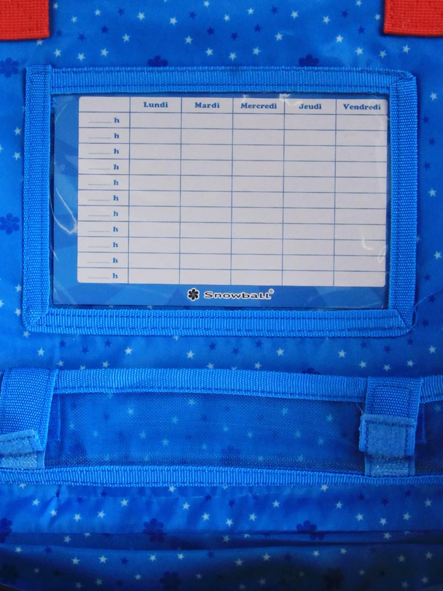 Le cartable CP – CE1 Snowball Kid Robot Dino possède deux compartiments dans lesquels manuels et cahiers peuvent être soigneusement triés. Une poche intérieure permet de garder la carte de cantine à l’abri. La règle dispose quant à elle de son emplacement réservé. Des sangles à scratch la maintiennent pour éviter qu’elle n’aille se cacher dans le fond. Les petits accessoires comme le goûter trouvent un place en accès rapide dans la poche frontale située sous le rabat.