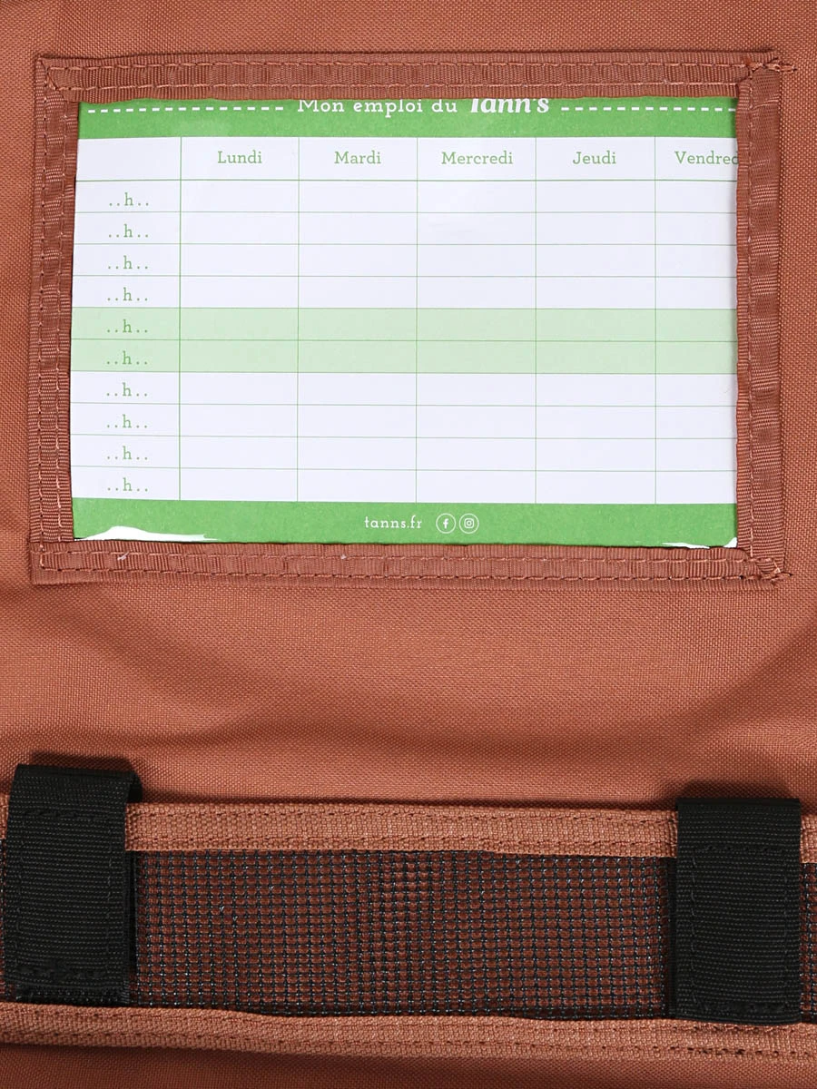 Les deux compartiments doublés du cartable ergonomique Tann’s Axel permettent de séparer les cahiers par taille ou par matière. Pour les accessoires, il comporte deux poches intérieures, un passant pour la règle et deux poches frontales. Pour faciliter l’organisation, il est muni d’un porte emploi du temps. En cas de perte, un porte-étiquette permet de le restituer facilement à son propriétaire.