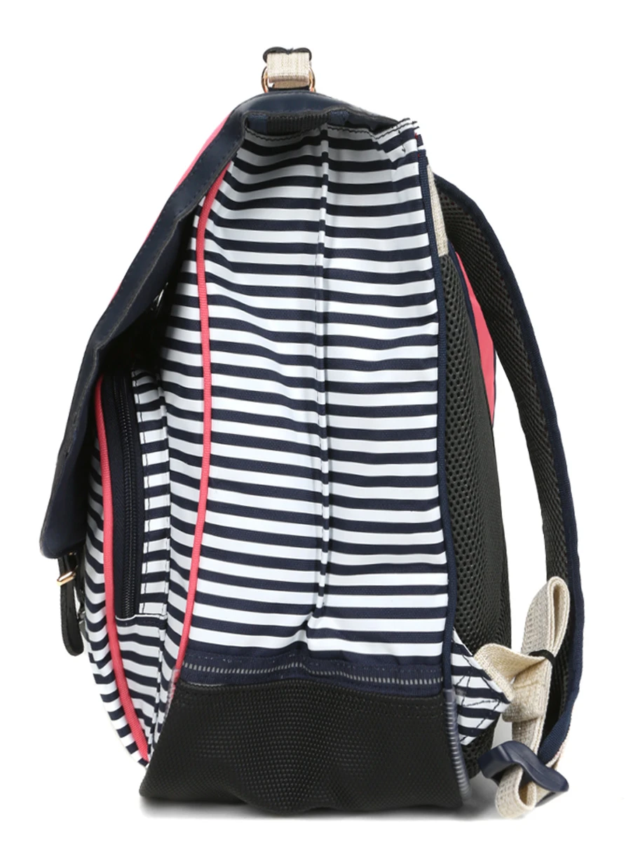 Le cartable Tann’s Enora 41 cm est idéal pour les futures capitaines avec les motifs marins qui ornent son revêtement éco-responsable en polyester recyclé. Compatible A4 et 24 x 32, il est pensé pour convenir aux classes du CE2 au CM2. Des détails réfléchissants permettent à sa porteuse d’être vue même en navigant de nuit.