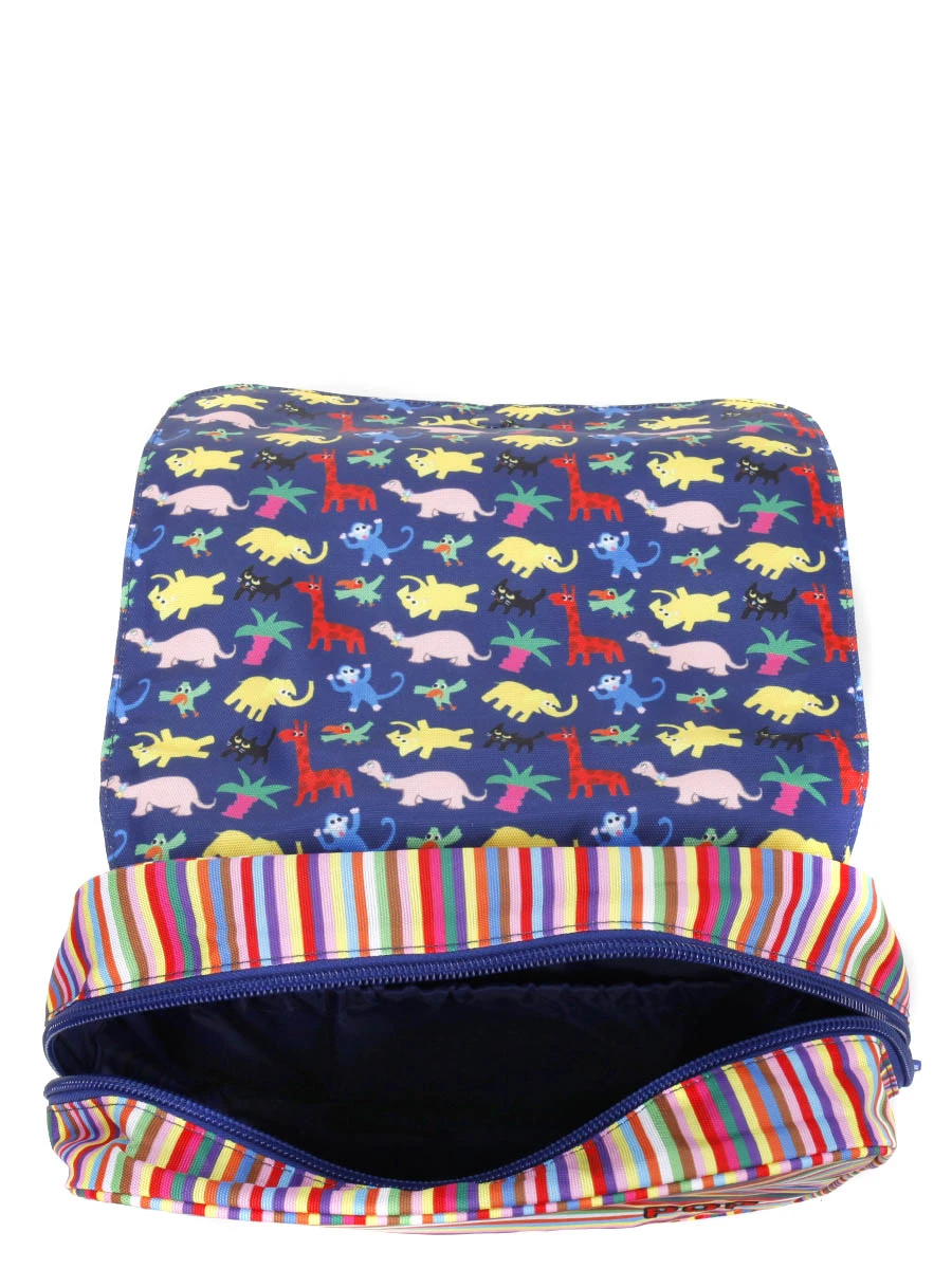 Le petit cartable Tann’s & L’Ecole des Loisirs Pop dispose d’un unique compartiment non compatible avec le format A4. Cela n’est en rien gênant puisque tous les essentiels pour le quotidien bien rempli de votre bout de chou. Crayons de couleurs et carnet de coloriage y trouvent une place de choix. Pour de petits effets personnels, il possède en sus une large poche intérieure ouverte et une petite poche zippée.