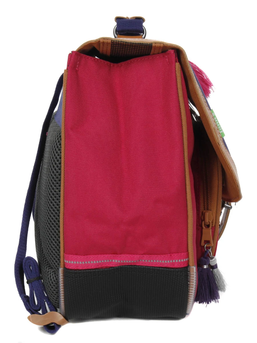 Le cartable Tann’s Alia 32 cm plaira sans nul doute autant aux petites filles coquettes qu’Ă leurs parents. Pour cela, il allie une fabrication lĂ©gère et robuste en polyester recyclĂ©, un système de portage ergonomique et, surtout, un design rĂ©solument girly. Ses jolis teintes Ă©clatantes de rose et violet sont mises en valeur par des ganses en simili cuir marron et un pampille pompon dĂ©corative. Son format est parfait pour la maternelle.