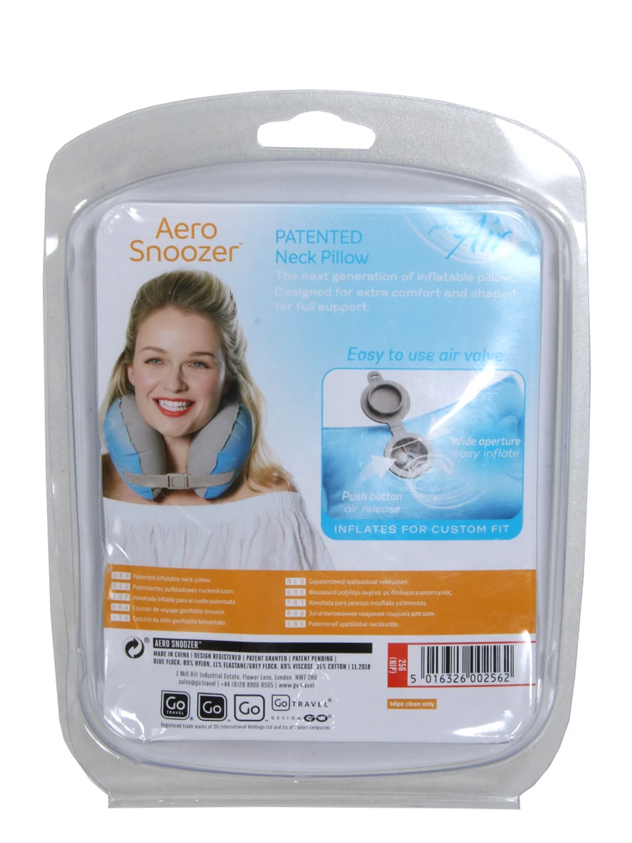 Le coussin de voyage gonflable Go Travel Confort Aero Snoozer est le compagnon parfait des longs voyage placés sous le signe du confort. Son revêtement façon velours est très doux au touché. Une fois gonflé, il offre un excellent maintien des cervicales. S’endormir agréablement dans le siège d’un train, d’un avion ou d’une voiture devient avec lui chose aisée.