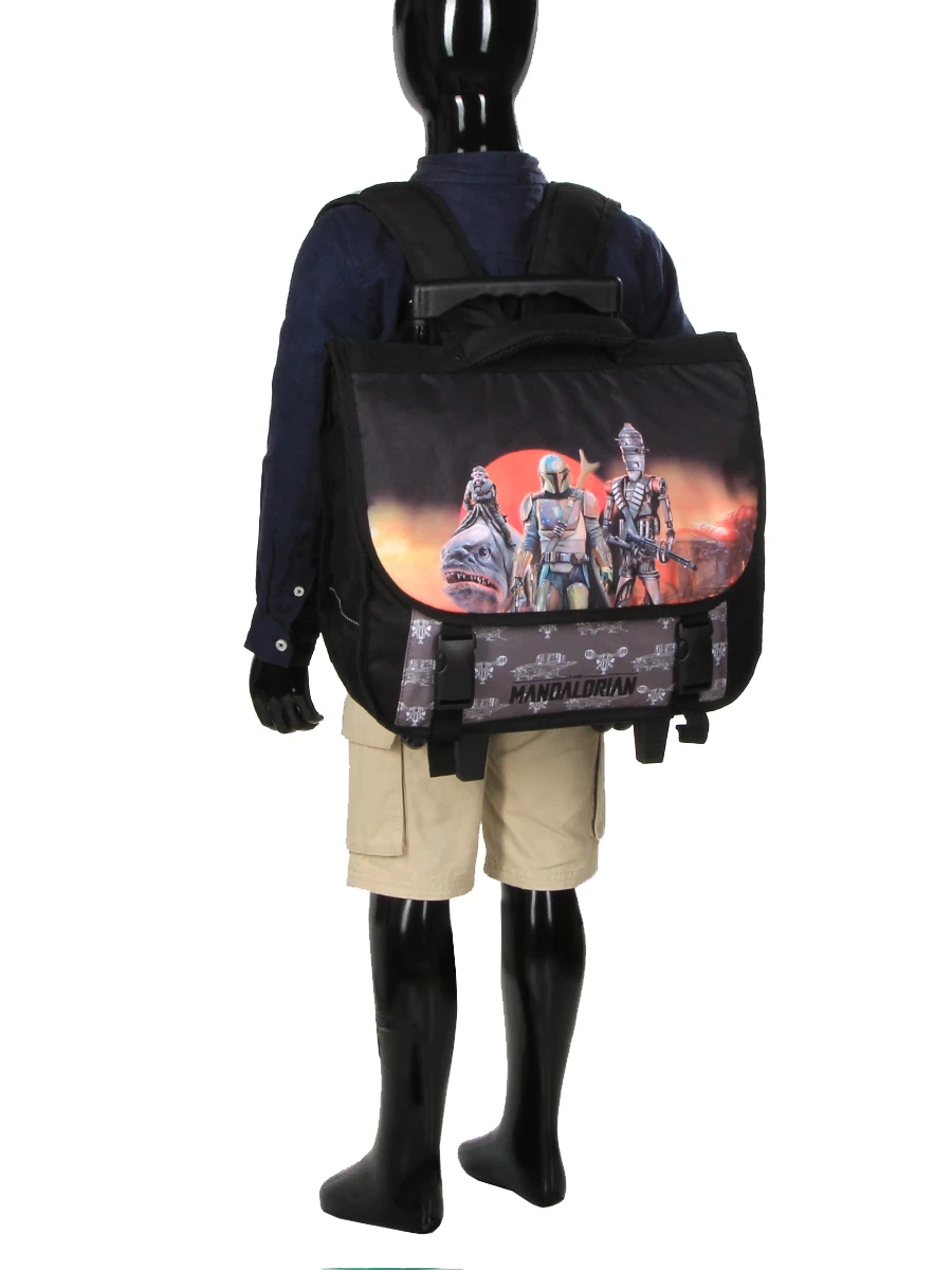 Le cartable à roulettes Star Wars The Mandalorian Soldiers 38 cm est idéal pour les classes du CP au CE2 avec son format compatible A4 et 24 x 32 et son système de roulage qui permet d’emporter tout le nécessaire sans se fatiguer. Son revêtement en polyester arbore les personnages de la série à succès pour le plus grand plaisir des fans de science-fiction. Des détails réfléchissants permettent à son porteur d’être vu dans l’obscurité.