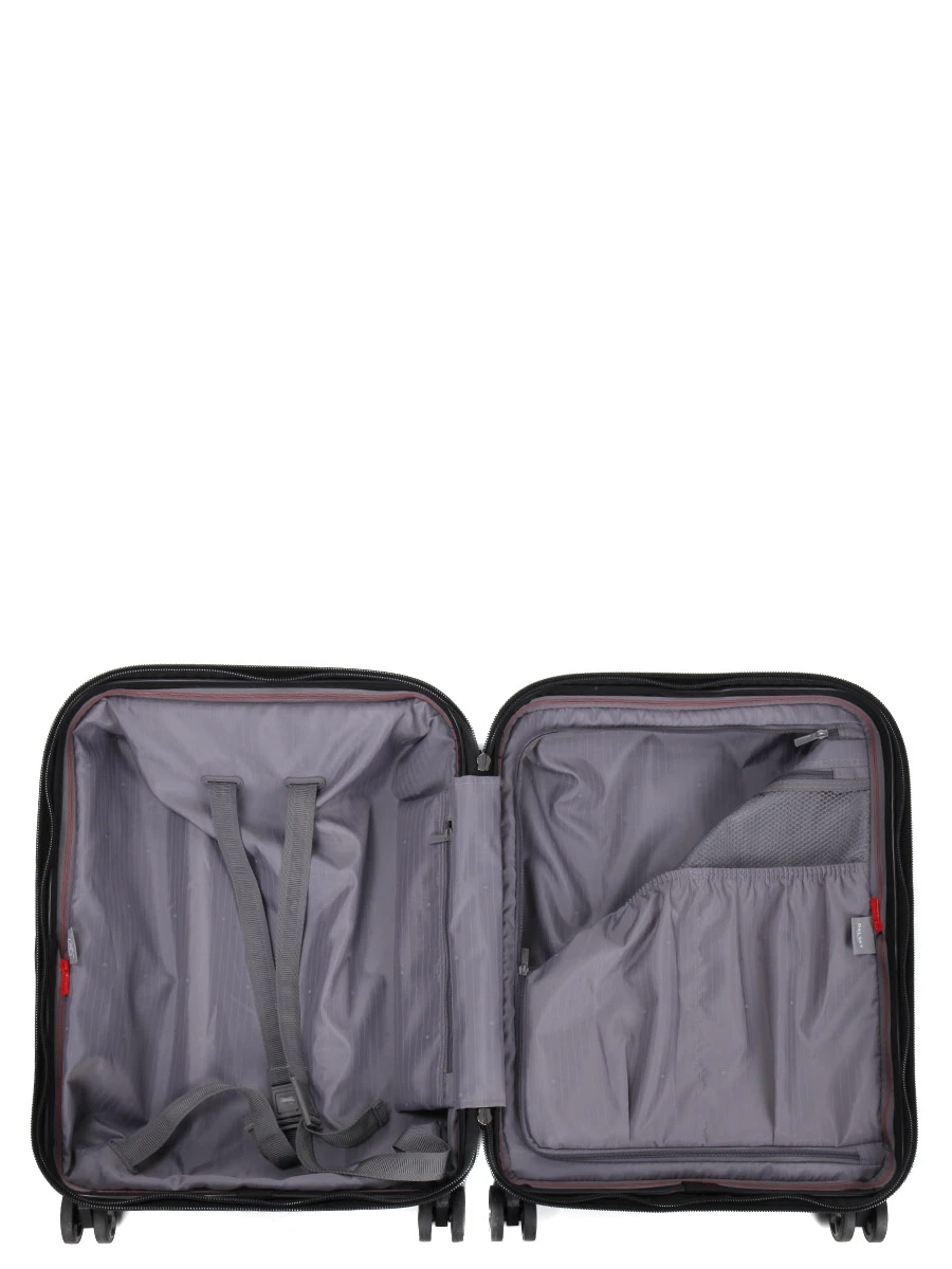 Les deux compartiments des valises rigides Delsey Promenade Hard 2.0 sont pourvus, pour l’un, de sangles de maintien réglables, et pour l’autre, d’un plateau de séparation zippé. Le premier est réservé aux vêtements qui arriveront impeccables à destination et le second, aux objets plus encombrants comme la trousse de toilette ou les chaussures de rechange. Les plus petits éléments se glissent dans l’une des quatre poches intérieures, afin de ne pas se perdre au fond de la valise. Notons que la doublure intérieure est amovible par un système de zip et lavable à 30°.