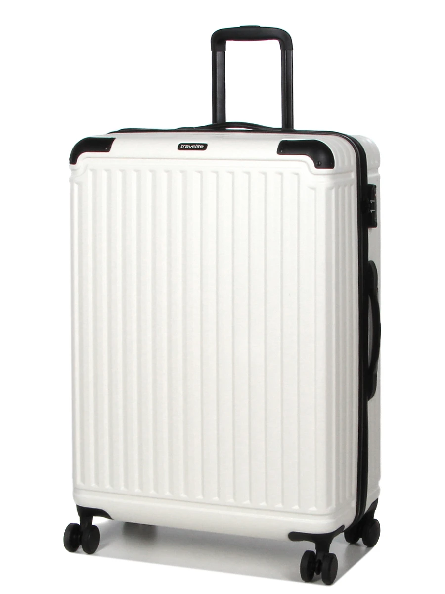 Les valises soute Travelite Cruise sont pourvues d’une serrure TSA à code pour des trajets l’esprit serein – y compris si l’on vient à passer les douanes états-uniennes. La valise cabine dispose quant à elle d’une serrure à code amplement suffisante lorsque le bagage reste à vos côtés au sol comme en cabine. Pour une glisse fluide, toutes ces valises sont munies de 4 roues multidirectionnelles et d’une poignée télescopique (à position réglable uniquement pour la taille cabine). En fonction des modèles, une ou deux poignées de portage complètent le tout pour encore plus de praticité.