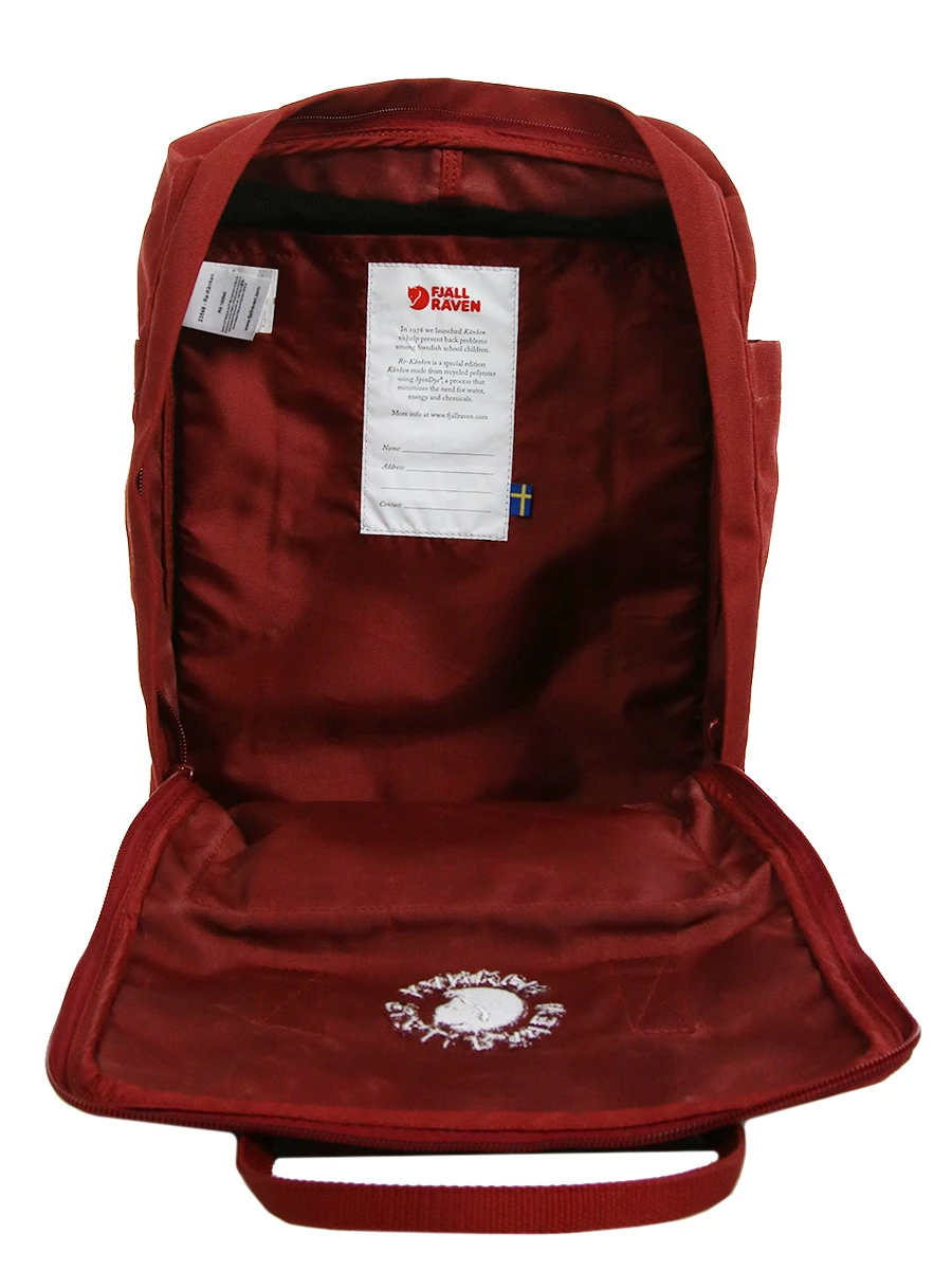 Le sac Fjällräven Re-Kanken se déplace tout en confort sur les épaules grâce à son coussin d’assise qui renforce son dossier et à ses bretelles à pression croisées et ajustables à taille. Il peut aussi se transporter comme un sac à main en le saisissant par ses 2 petites anses supérieures. Pratique, en cas de perte, son propriétaire est identifiable sans difficulté grâce à son étiquette personnalisable intégrée.