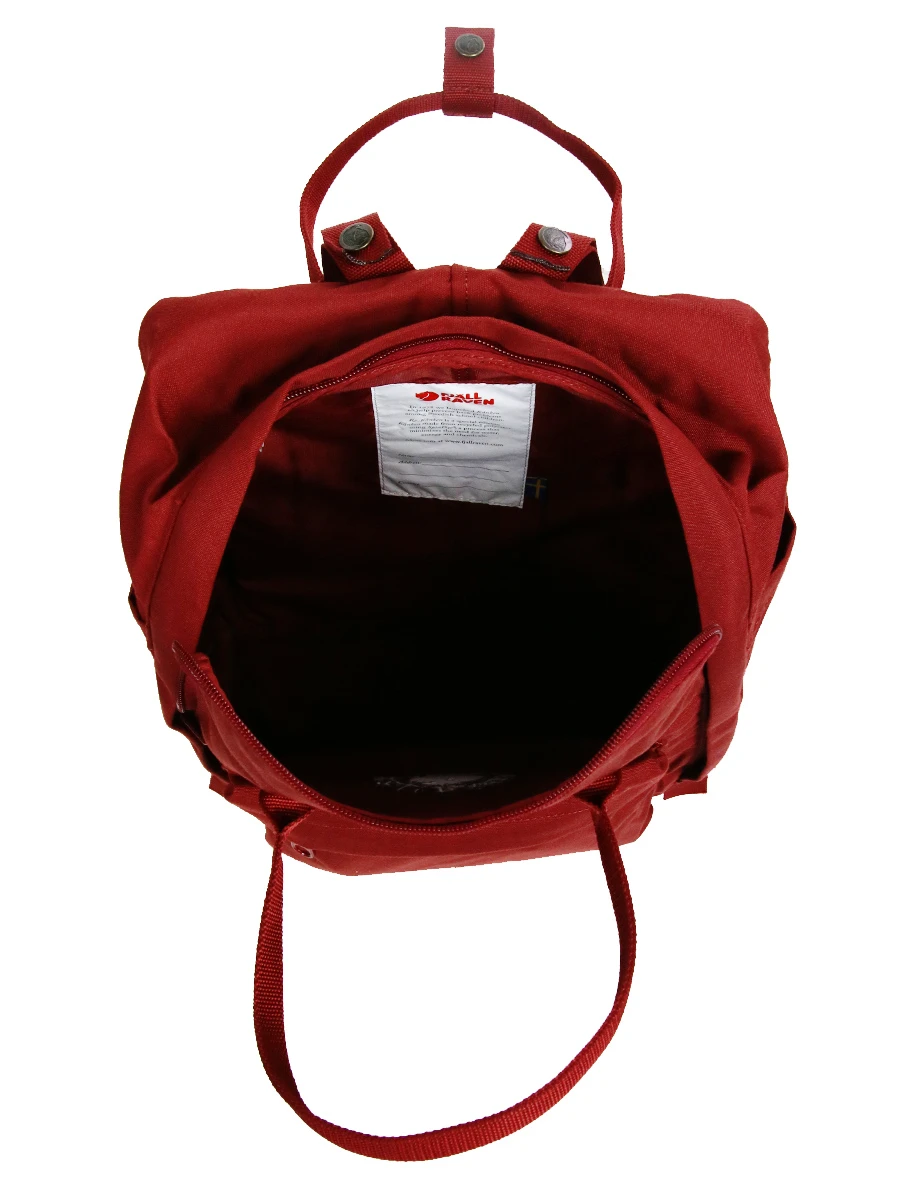 Le sac casual Fjällräven Re-Kanken possède un unique compartiment avec une grande ouverture en U munie d’une fermeture à glissière. Il est ainsi aussi facile de le charger que d’accéder à son contenu. Sa poche plate permet de sérier certains documents ou affaires. A l’extérieur, ses 2 poches latérales ouvertes permettent le transport d’une bouteille ou d’un parapluie, par exemple. Sa poche frontale zippée permet de garder à portée de main certains effets personnels comme le téléphone.