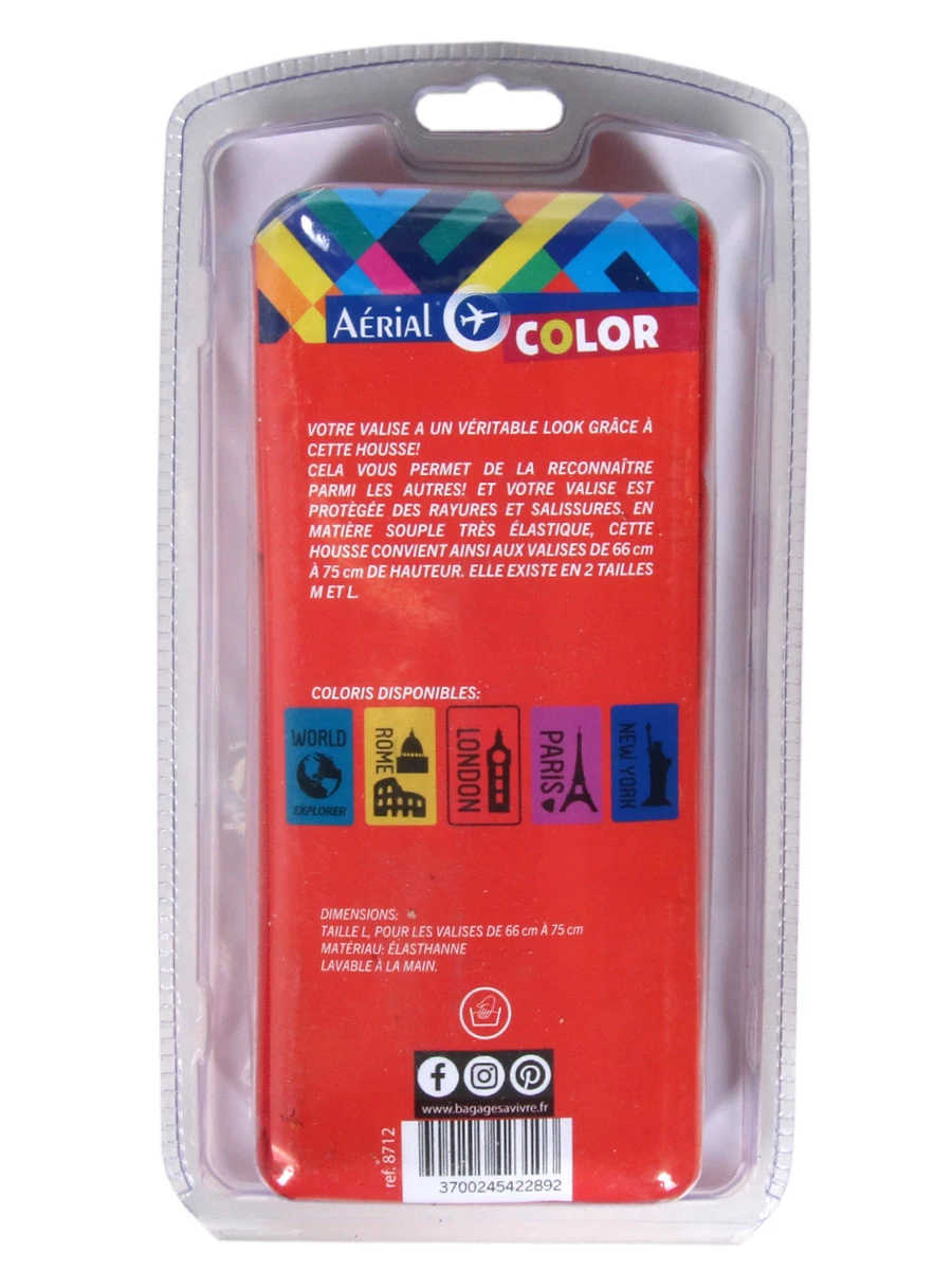 La housse de valise Aérial London – L permet d’apporter une touche distinctive à votre valise avec son coloris éclatant. Il est ainsi plus aisé de la repérer sur le carrousel à bagages de l’aéroport. Elle est également adaptée pour préserver au mieux votre valise des aléas du transport (taches et abrasions notamment). Extensible, elle peut servir pour des valises allant de 66 cm à 75 cm de hauteur. De plus, elle est disponible à un prix doux qui ne gâche rien.