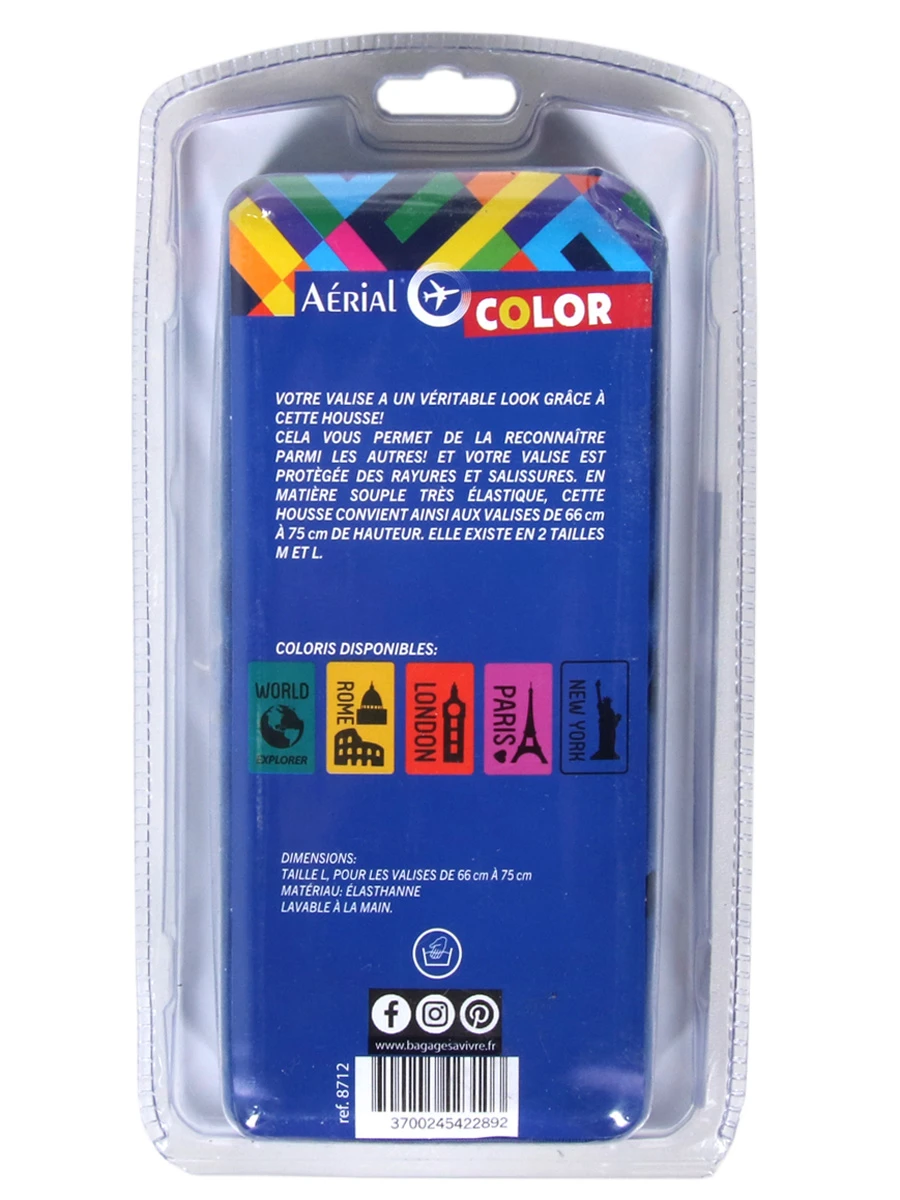 La housse de valise Aérial New York – L possède un coloris éclatant et un motif original permettant de repérer plus aisément votre valise dans la foule ou sur le carrousel à bagages de l’aéroport. Sa conception extensible en polyester et élasthane permet de l’utiliser pour des valises de 66 cm à 75 cm de hauteur. Légère et pratique, elle permet de préserver votre bagages des aléas du voyage et offre une protection complémentaire en cas de chocs. En prime, elle est disponible à un prix très attractif.