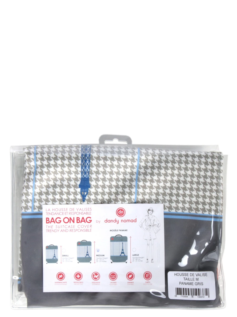 La housse de valise Dandy Nomad Paname – M permet de rendre votre valise unique avec ses imprimés pieds de poule et son motif à l’effigie de la tour eiffel. Son style parisien moderne et original procède d’un design français. Elle est idéale pour préserver le revêtement de votre valise des aléas liés au transport en soute, notamment. Sa conception extensible en polyester et élasthane permet de l’adapter sur différentes valises de taille moyenne (jusqu’à 70 cm de hauteur). Réutilisable, elle est une alternative écologique au film de protection transparent disponible dans les aéroports pour protéger votre bagage.