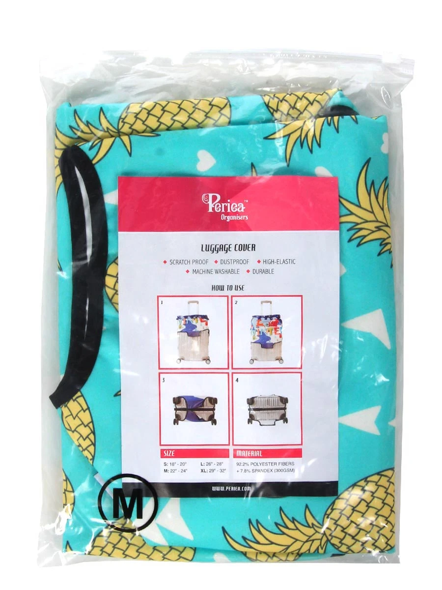 La housse de valise Periea Green with Yellow Pineapples M habille votre valise de ses amusants motifs d’ananas sur fond turquoise qui Ă©voquent l’Ă©tĂ©. Cet imprimĂ© plein de fraĂ®cheur permet Ă votre bagage d’ĂŞtre rapidement repĂ©rable parmi ceux des autres voyageurs et de ne plus se tromper au moment de le rĂ©cupĂ©rer par exemple sur le tapis roulant Ă la descente d’avion. FabriquĂ© en un tissu extensible Ă base de polyester et d’Ă©lasthanne, il s’adapte Ă une valise moyenne jusqu’Ă une hauteur de 68 cm. Ce tissu prĂ©serve la coque des Ă©claboussures pendant le roulement et des inĂ©vitables petites rayures qui surviennent notamment lors de la mise en soute.