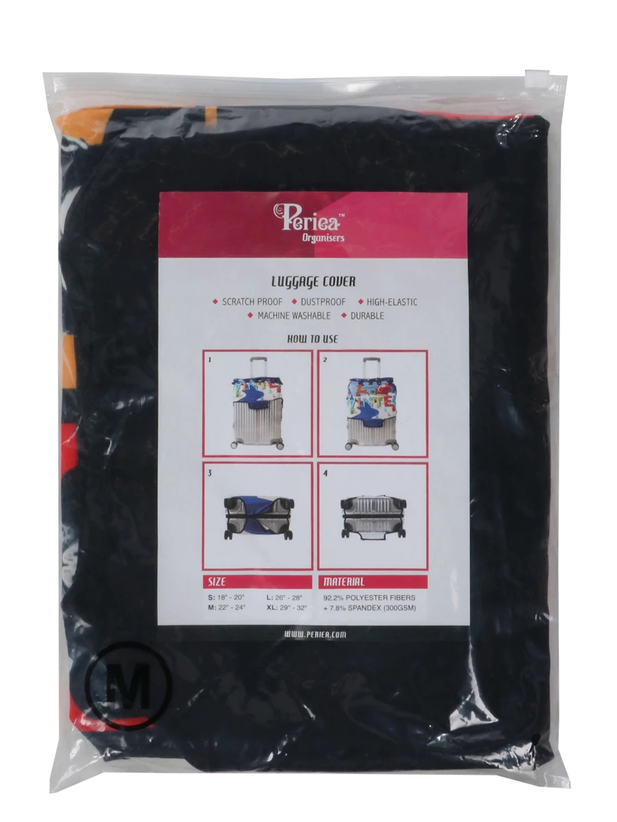 En un clin d’œil, la housse de protection Periea Monkey se positionne sur la valise et se ferme sous la coque par sa fermeture à glissière. Nul risque de la voir se décaler au cours du voyage : elle est maintenue en place par deux sangles élastique se fermant par une attache. Elle masque les dispositifs d’ouverture de la valise et dissuade ainsi les tentatives d’effraction. Elle laisse en revanche libre accès à ses poignées pour pouvoir la tracter ou la porter comme d’habitude.