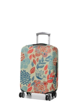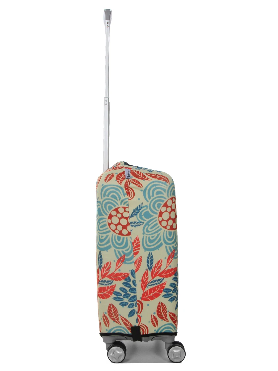 La housse de valise Periea Red and Blue Leaves S met votre valise cabine à la mode des années 70 avec ses imprimés floraux bleus et rouges orangés sur fond crème. Elle personnalise votre bagage et le rend ainsi plus facilement repérable, ce qui peut s’avérer très utile lorsqu’il est mêlé à ceux des autres voyageurs sur le tapis roulant à l’arrivée en avion. Conçue pour se glisser sur de petites valises jusqu’à 56 cm de hauteur, elle s’ajuste parfaitement grâce à son tissu extensible composé de polyester et de spandex. Protégée par cette housse, la coque de votre valise est à l’abri des petites rayures et des salissures. Enfin, le budget vacances est lui aussi à l’abri grâce à son tout petit prix.