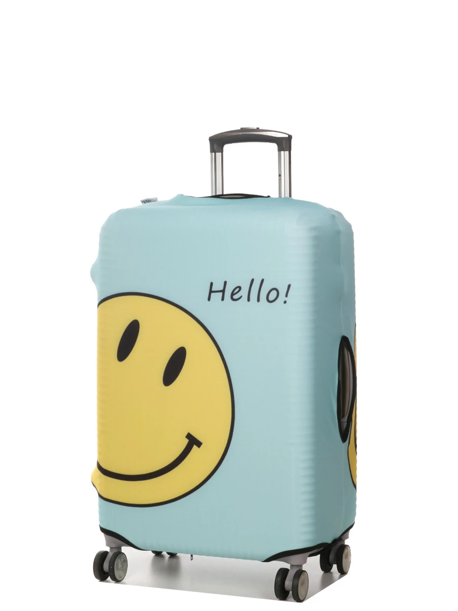 Bandes élastiques et fermetures par attache et zip servent à fixer la housse Periea Smiley Face sur la valise de telle façon qu’elle ne se décale pas pendant les trajets et les diverses manutentions. La poignée télescopique et celles de portage restent accessibles grâce à des découpes pratiquées dans les parties supérieure et latérale de la housse.