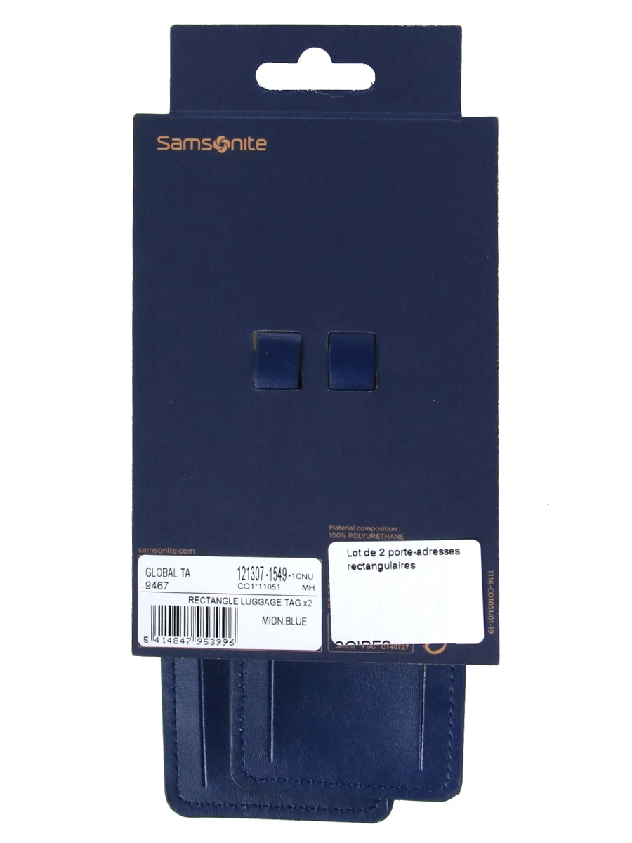Le lot de 2 porte-adresses Samsonite est idéal pour des voyages sereins y compris lorsque l’on part avec plusieurs bagages. Avec leur sangle à attache métallique réglable, il se fixe de manière commode et rapide à tous types de poignées de portage. Ils permettent une identification rapide du propriétaire d’un bagage laissé sur un porte-bagages à l’entrée d’une rame de train, par exemple. Ils disposent d’une confection soignée en simili cuir garantie 2 ans par la marque.