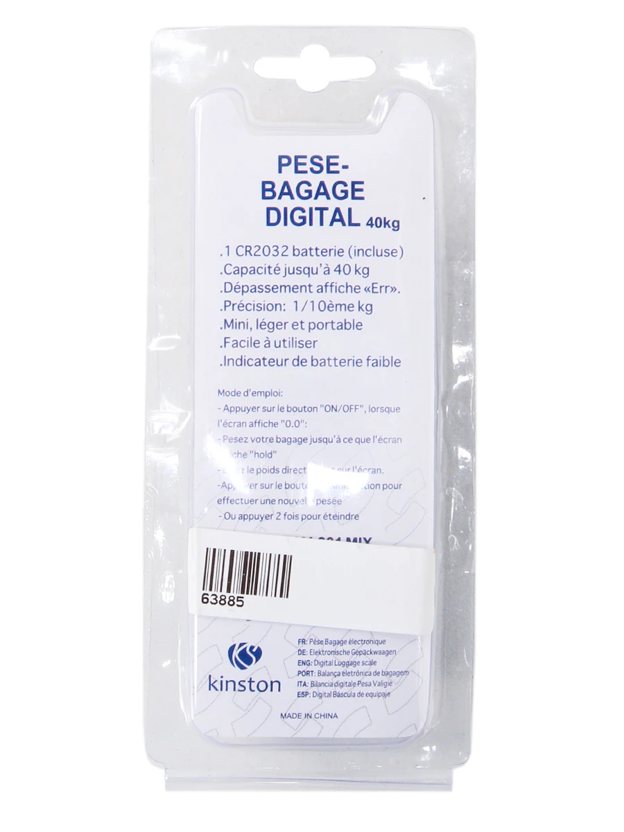 Le Mini pèse bagage électronique Kinston permet de préparer les voyages avec sérénité. Avec lui, plus de risque de poids excédentaire au moment de l’enregistrement des bagages en soute. Son affichage digital permet de lire la pesée en un coup d’oeil. Son bouton ON/OFF permet de préserver sa batterie. Il est d’ailleurs fournie avec une pile CR2032 pour permettre une utilisation immédiate.