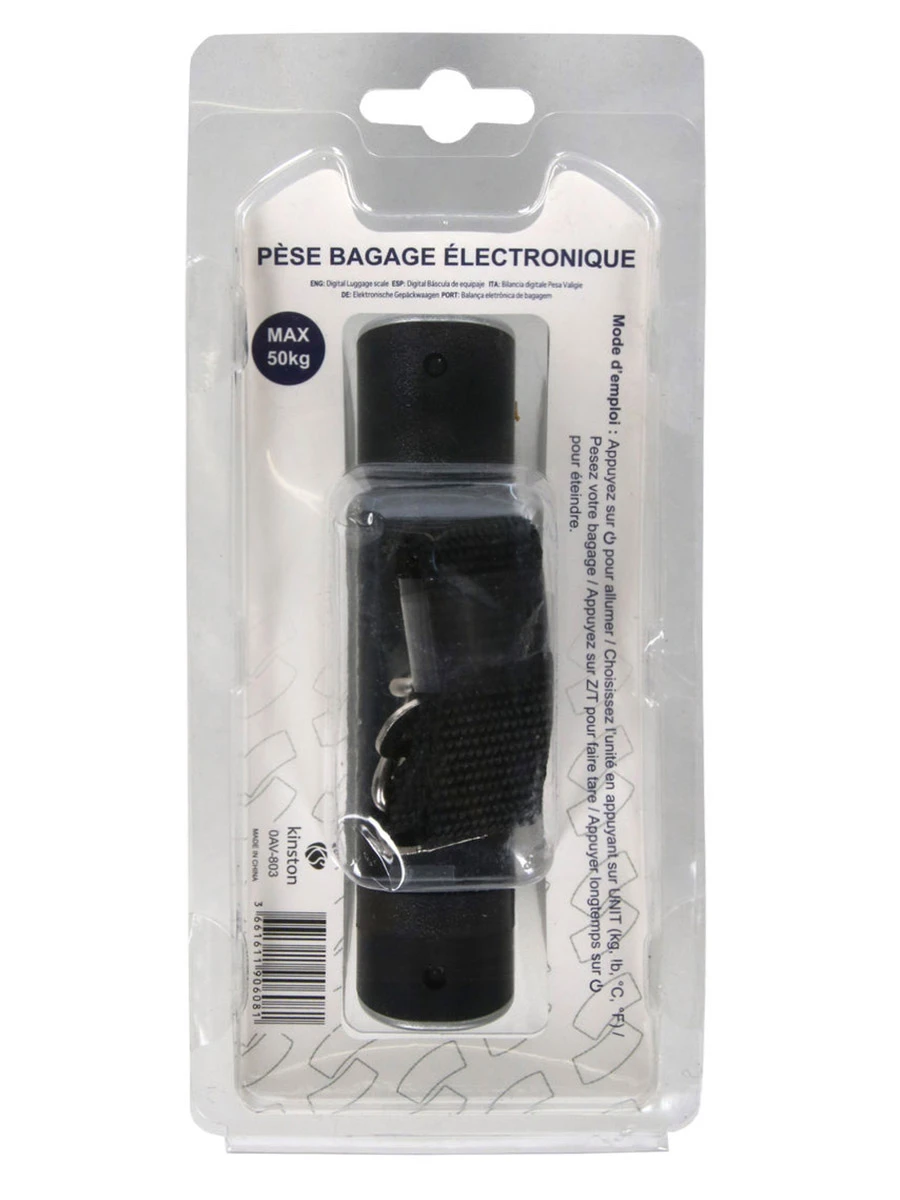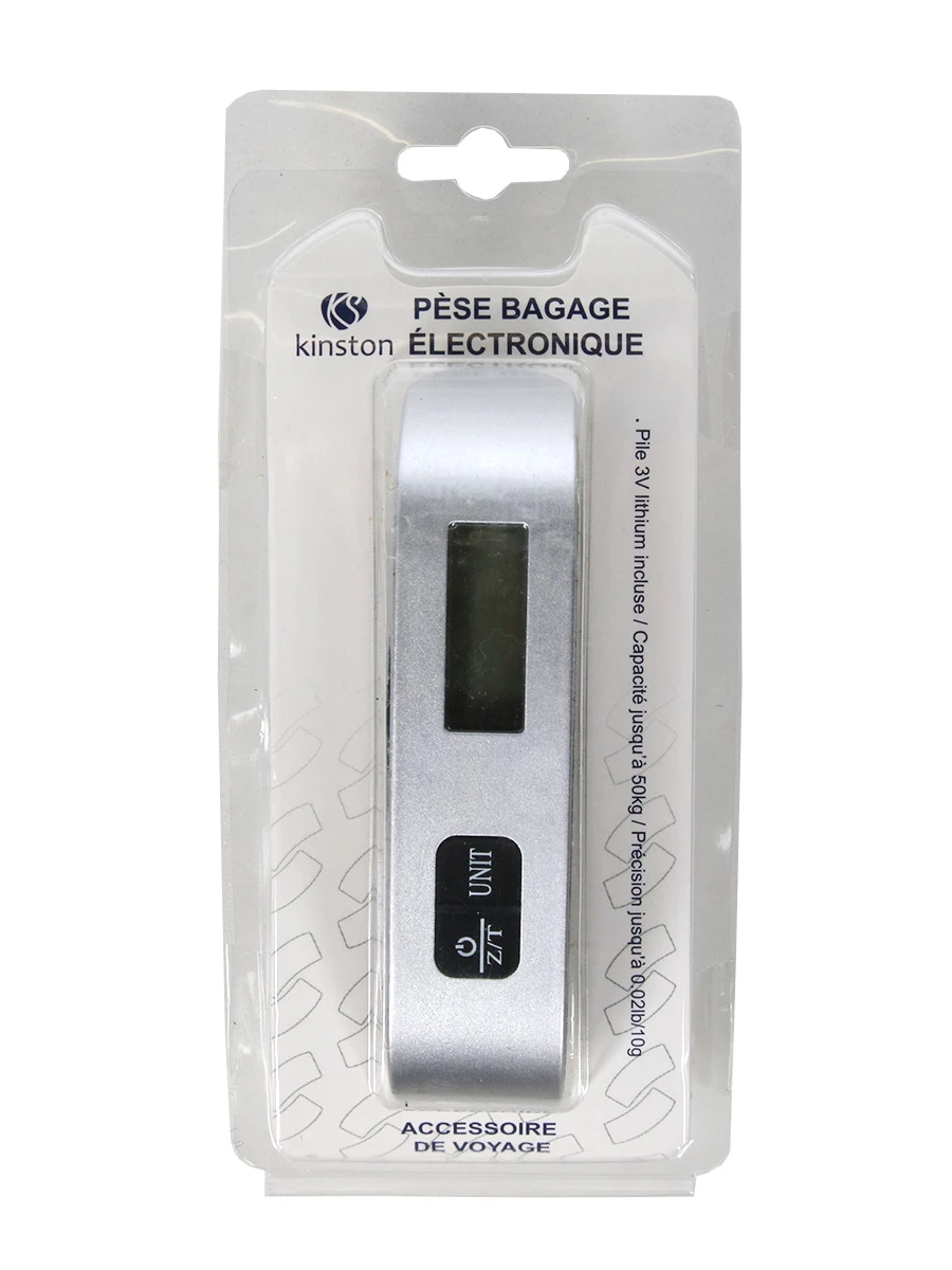 Le pèse bagage électronique Kinston est un allié de choix pour des préparatifs de voyage sans prise de tête. En ayant vérifié le poids de vos bagages, il permet de ne pas avoir de surprise en arrivant à l’aéroport. Son large écran d’affichage permet une lecture rapide du résultat. Si on le souhaite, il est possible de modifier l’unité de mesure. Il permet de peser des valises ou des sacs de voyage de moins de 50 Kg. Il est founi avec une pile CR2032 pour permettre une utilisation immédiate. Pour réaliser une pesée, il suffit de passer sa sangle dans l’une des poignées du bagage. Une fois qu’il n’est plus d’utilité, il est possible de l’éteindre en utilisant son bouton ON/OFF.
