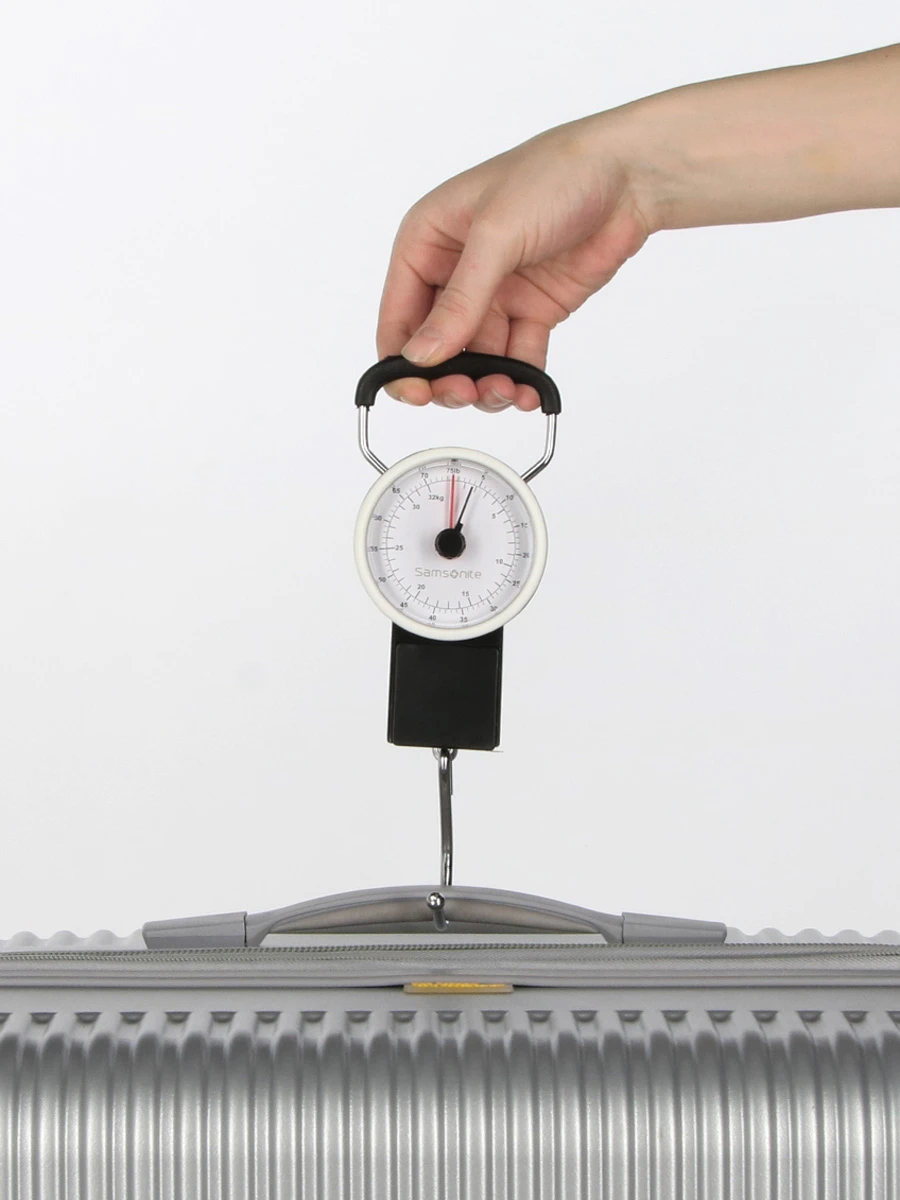 Le pèse bagage manuel Samsonite est l’accessoire parfait pour partir en voyage sans crainte. Il permet de vérifier le poids de son bagage avant de partir. Ne pouvant supporter que 30 Kg maximum, il n’y a pas de risque de dépasser les limites de poids autorisés dans les aéroports. Il fonctionne très simplement à l’aide d’un crochet pour bagage et d’une balance interne. Le curseur pointe ensuite précisément le poids calculé.