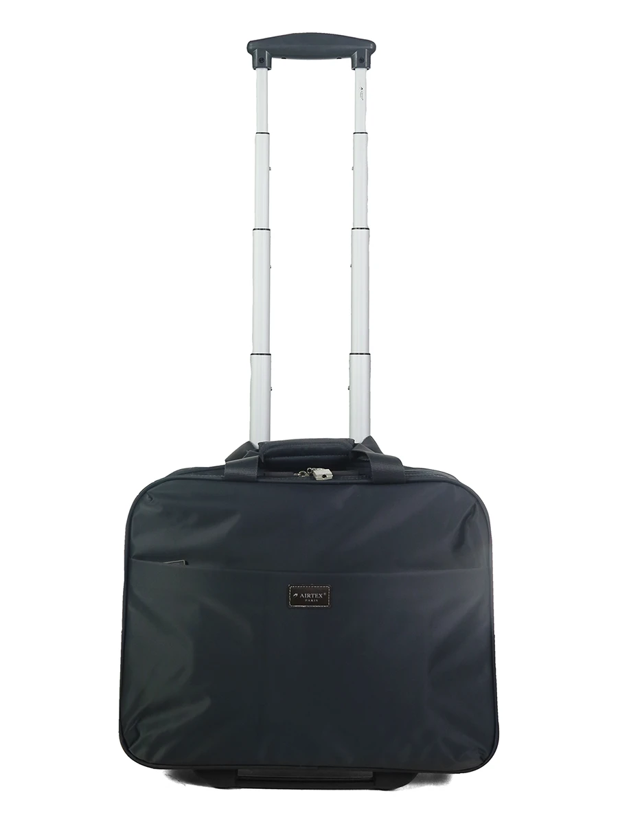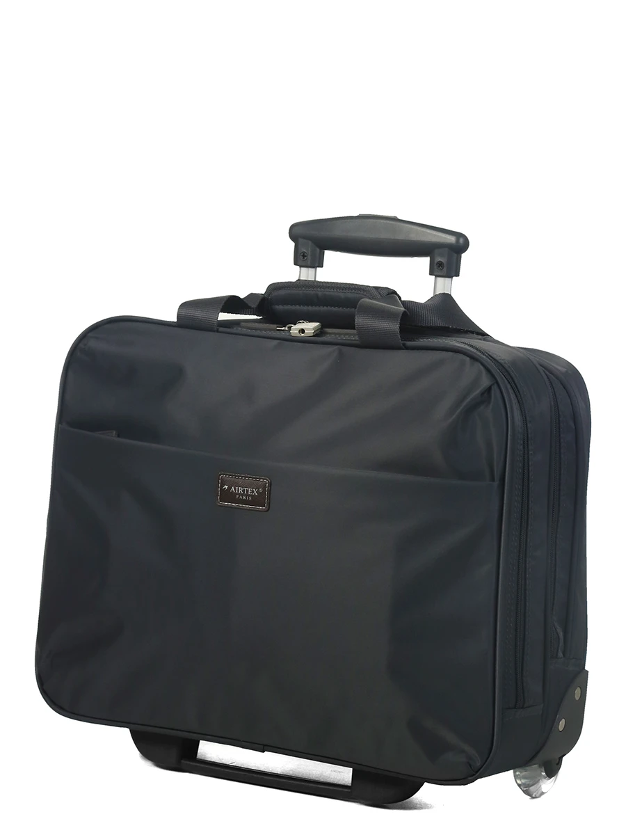 Ce pilot case 2 roues Airtex Mimas se ferme à l’aide d’une glissière, laquelle est sécurisée par un cadenas à clé. A l’intérieur, il est séparé en 2 compartiments ayant chacun leur rôle. Le premier est dédié au rangement de vêtements et/ou de documents professionnels. Le second octroie le rangement d’un ordinateur portable 17 pouces dans une poche dédiée. Il est également équipé de 2 poches en filet et d’une poche zippée pour les accessoires informatiques complémentaires.