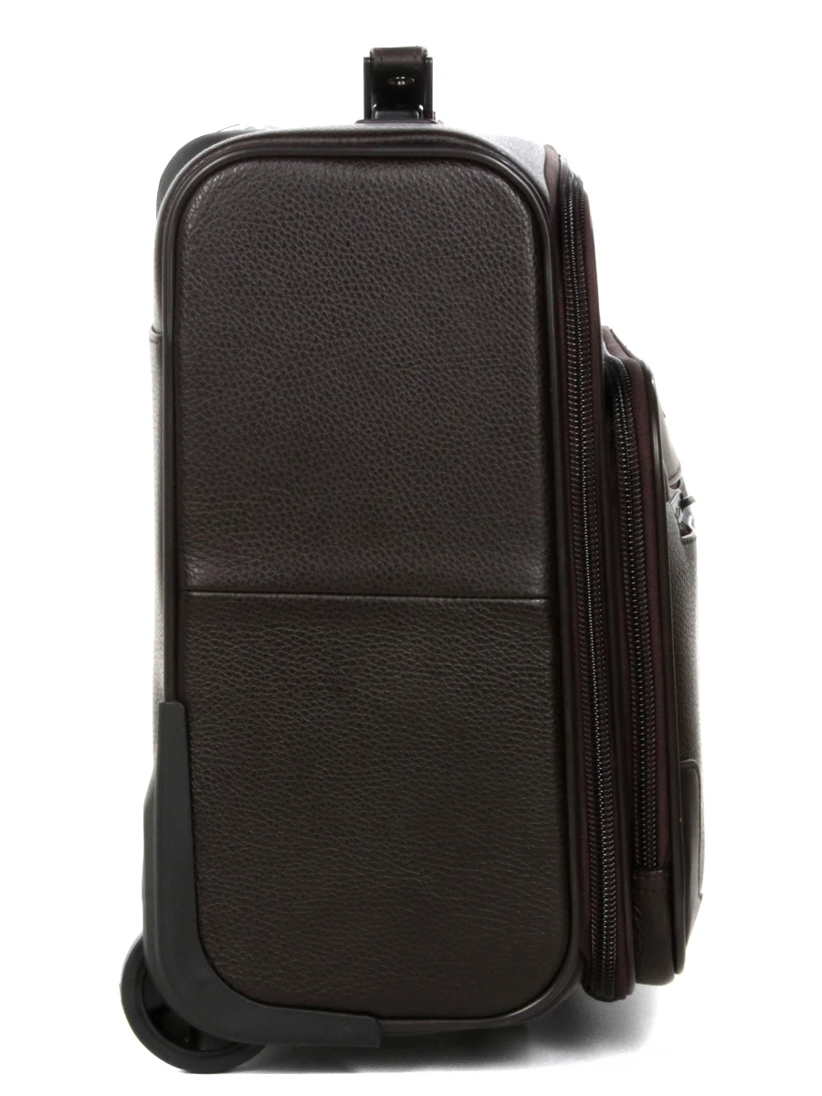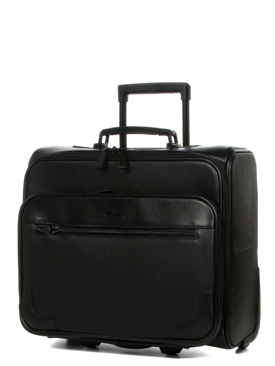 Le pilot case Gérard Hénon Manhattan se tracte agréablement à l’aide de sa poignée télescopique double canne à position réglable et de ses 2 petites roues. Si l’on préfère, il peut être tenu à la main par sa large poignée haute renforcée. Pour des trajets l’esprit serein, il est possible de glisser un petit cadenas (non fourni) dans ses curseurs troués et de laisser bien en vue les coordonnées de son propriétaire en les inscrivant sur l’étiquette de son porte adresse. Enfin, pour préserver son beau revêtement d’une usure prématuré, il est doté de renforts rigides sur le dessous et fourni avec une housse de rangement en tissu.