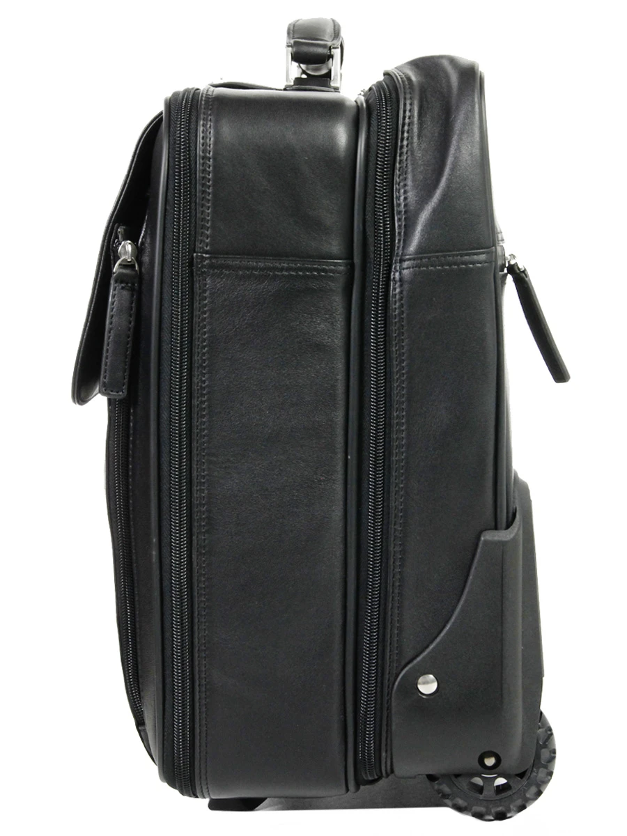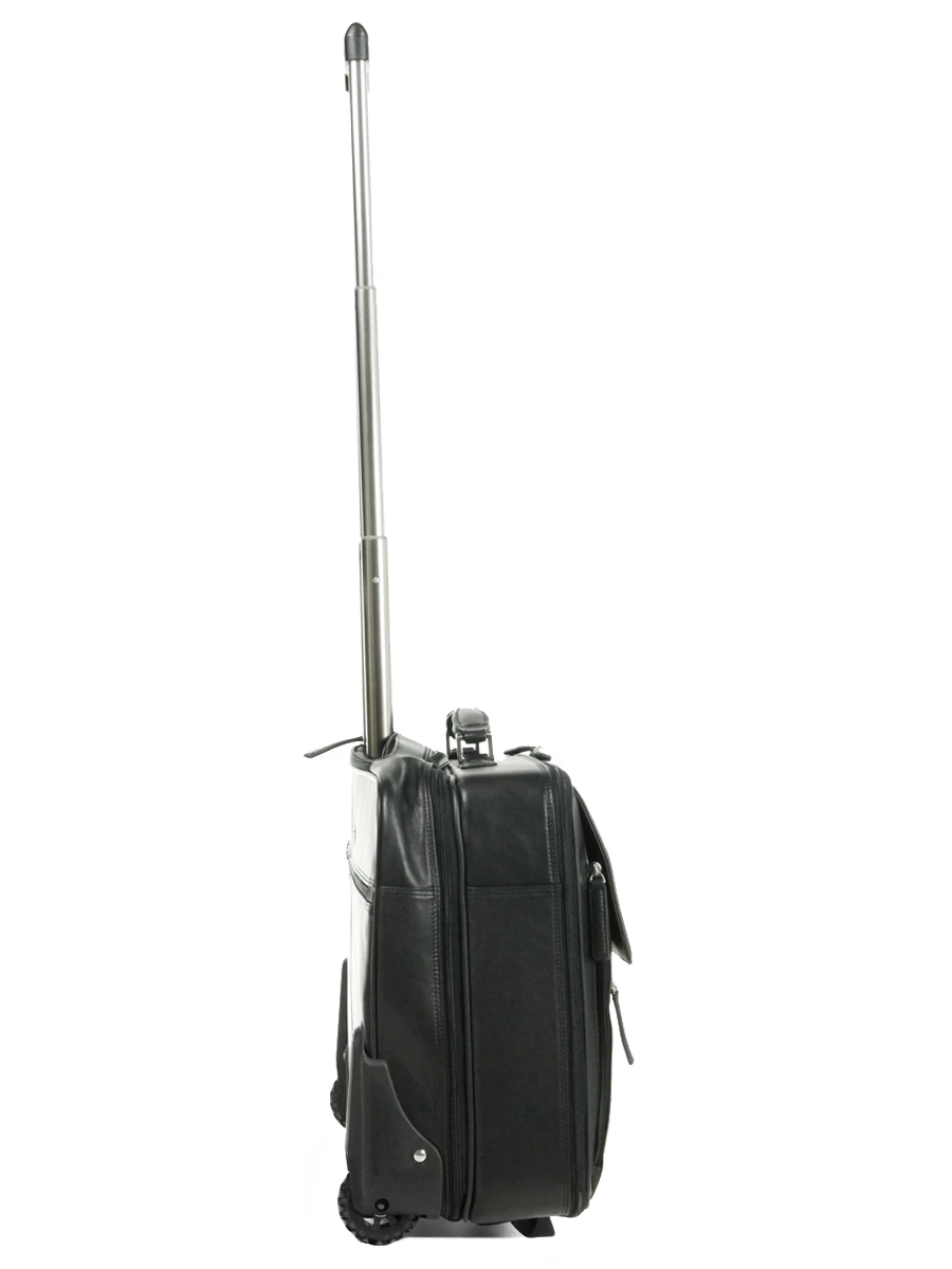 Ce pilot case en cuir Katana Affaires se déplace avec confort, grâce à son trolley ajustable double tube (rangé dans une poche zippée), monté sur 2 larges roulettes silencieuses. Il dispose également d’une poignée de portage en cuir si vient le besoin de le déplacer à la main. Ce sac à roulettes est fourni avec une belle housse, permettant de le ranger chez soi loin de la poussière.