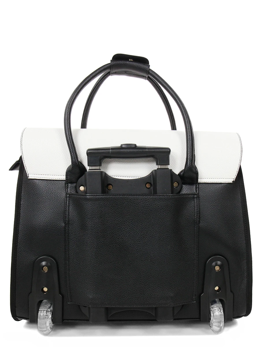 Ce pilot case pour femmes Olivia Lauren Buzz peut se transporter de plusieurs façons au choix selon vos besoins et votre humeur. On peut le tenir à la main ou à l’épaule par ses 2 grandes anses renforcées ou tout simplement le faire rouler sur ses 2 roues solides en le tractant par son trolley double tube. Ses pieds de protection lui assurent une excellente stabilité et lui empêchent de basculer.