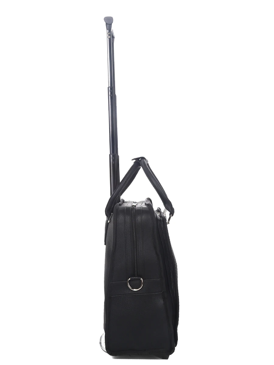 Ce pilot case Eagle peut soit se porter comme un sac à main par sa double poignée supérieure, confortable, soit se faire rouler sans efforts à l’aide de son trolley double tube monté sur 2 roulettes solides. Il est équipé de pieds de protection qui lui permettent de rester bien stable à l’arrêt.