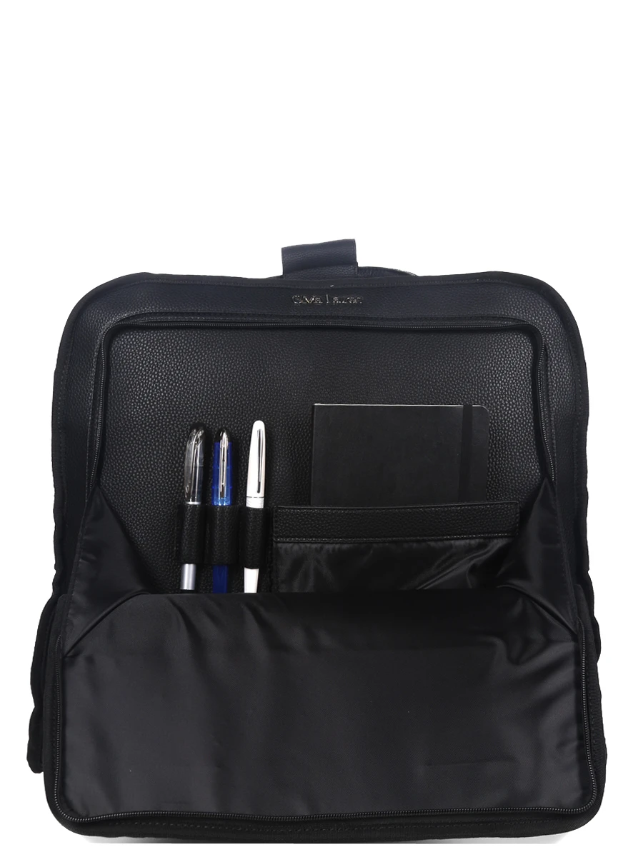 A l’extérieur, il est muni d’une grande poche organiseur, contenant des passants pour stylos et une grande poche plate.