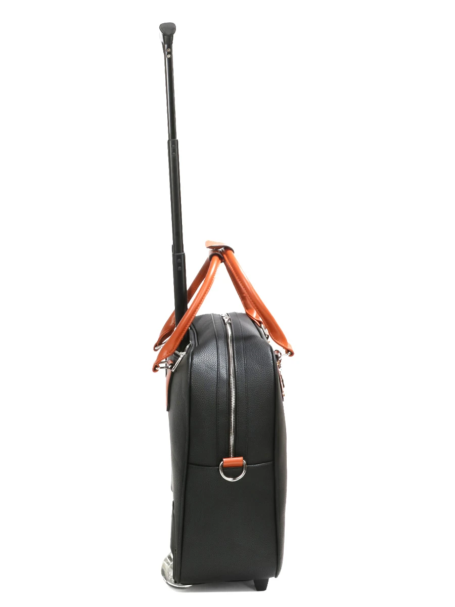 Le pilot case Olivia Lauren Nolan glisse confortablement sur ses 2 roulettes. Pour le tracter, il suffit de saisir sa poignée télescopique double canne discrètement rangée dans une poche zippée dédiée. Sa bandoulière ajustable à taille et détachable permet de le porter à l’épaule si l’on préfère. Ses 2 anses offrent une prise en main agréable. Dessous, des renforts rigides lui confèrent une meilleure protection contre les chocs et les abrasions. Enfin, pour l’entreposer avec soin entre 2 utilisations, il est fourni avec une housse de rangement.