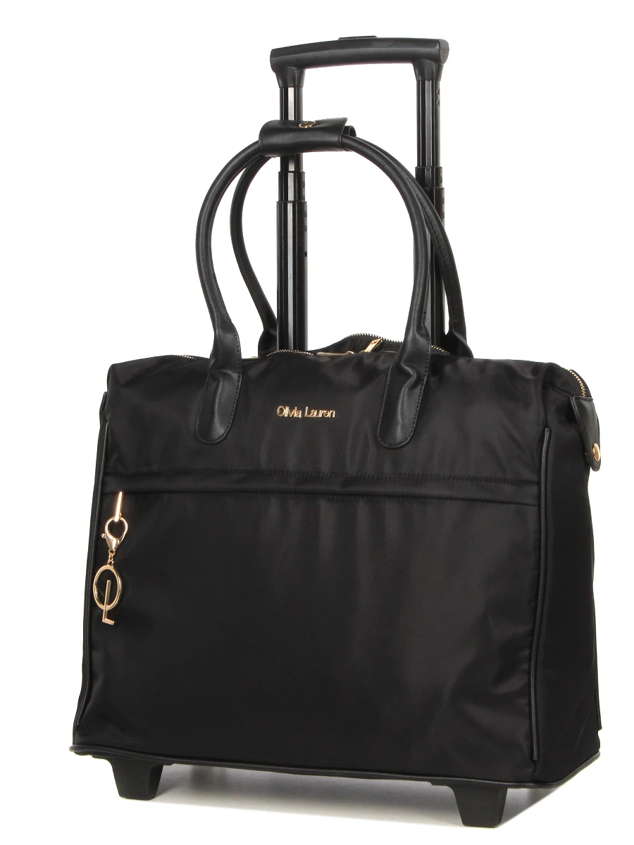 Le pilot case Olivia Lauren Nora 16 pouces apporte une touche de féminité dans la journée de travail avec ses détails raffinés. Son revêtement en tissu synthétique est relevé de finitions qui attirent l’œil : anse et passepoils en simili-cuir, fermetures à glissière, logo de la marque et porte-clefs dorés. Disponible en plusieurs couleurs, il affiche un style sobre et discret en noir ou beaucoup plus éclatant dans ses teintes les plus vives.