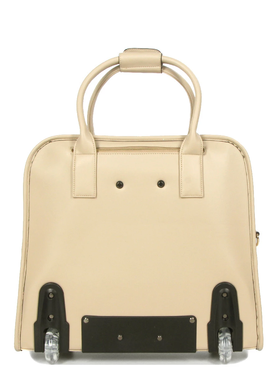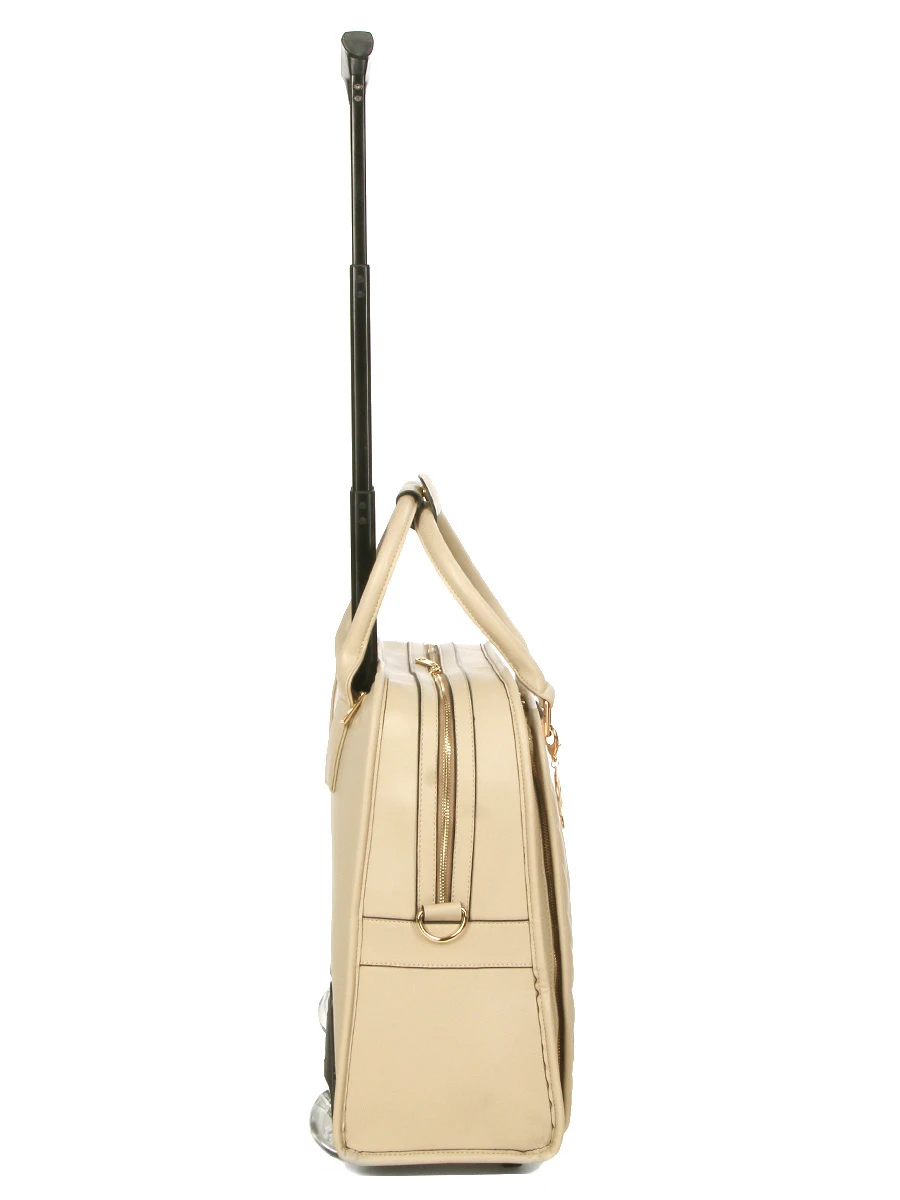 Le pilot case souple Olivia Lauren Sandra est équipé de deux roues et d’un trolley ajustable qui permettent de transporter ses affaires sans effort. Aucune crainte qu’il s’abîme en frottant au sol, puisqu’il est efficacement protégé par ses renforts inférieurs et ses pieds. Le trolley se replie dans une poche zippée pour faire du pilot case un élégant sac à porter en bandoulière ou à la main.