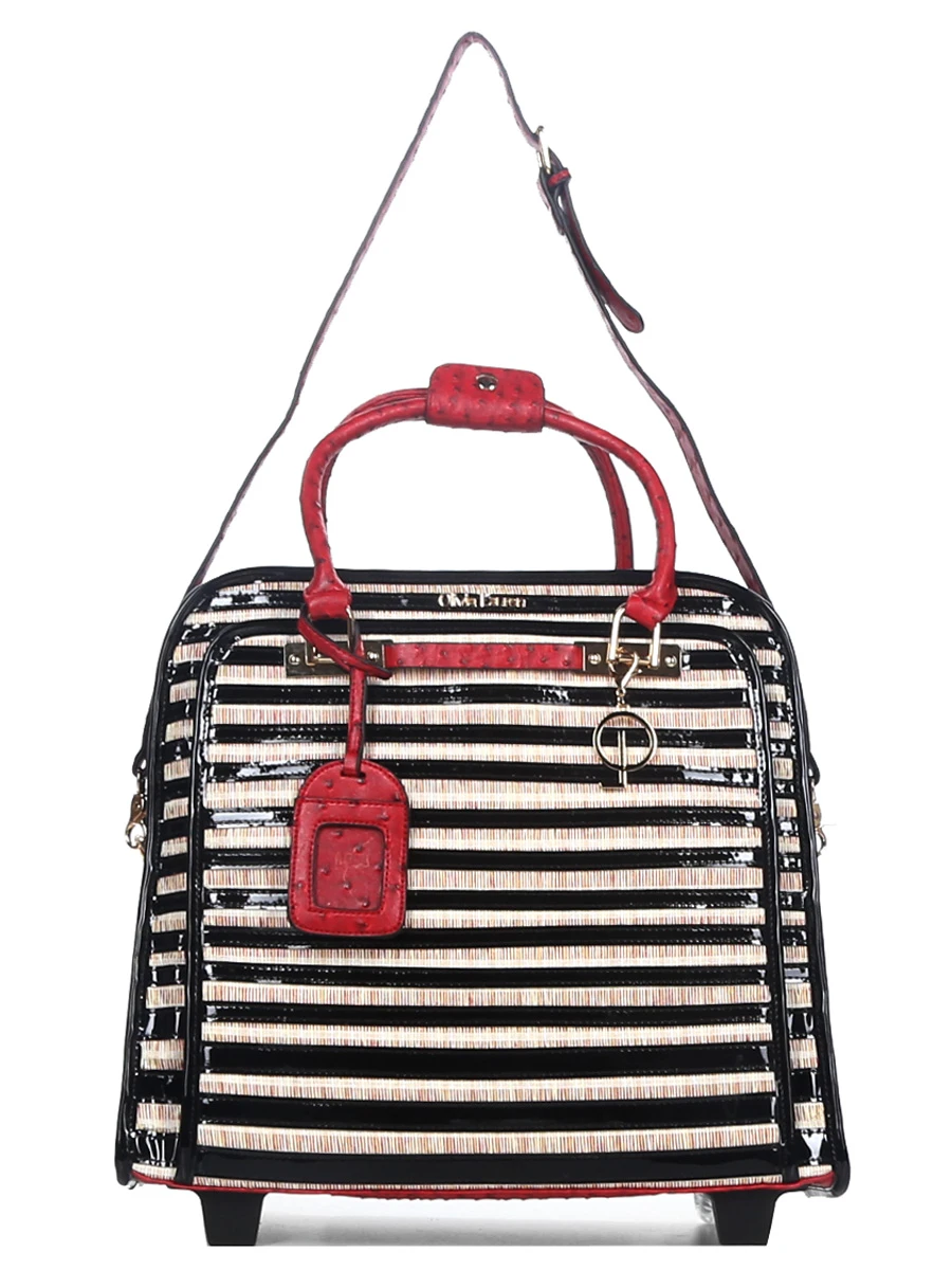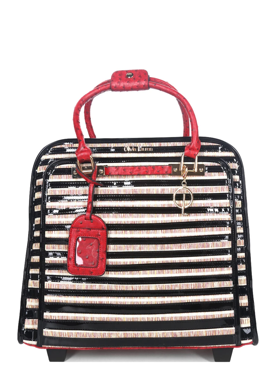 Le sac trolley Olivia Lauren Stripes est constitué d’un grand compartiment principal de 32 L. Celui-ci renferme plusieurs petits espaces pour accessoires comme des poches plates et une poche zippée. Il peut également accueillir un ordinateur 11 pouces dans sa poche renforcée. A l’extérieur, ce sac est pourvu d’une grande poche frontale, facile d’accès pour les papiers et objets importants.