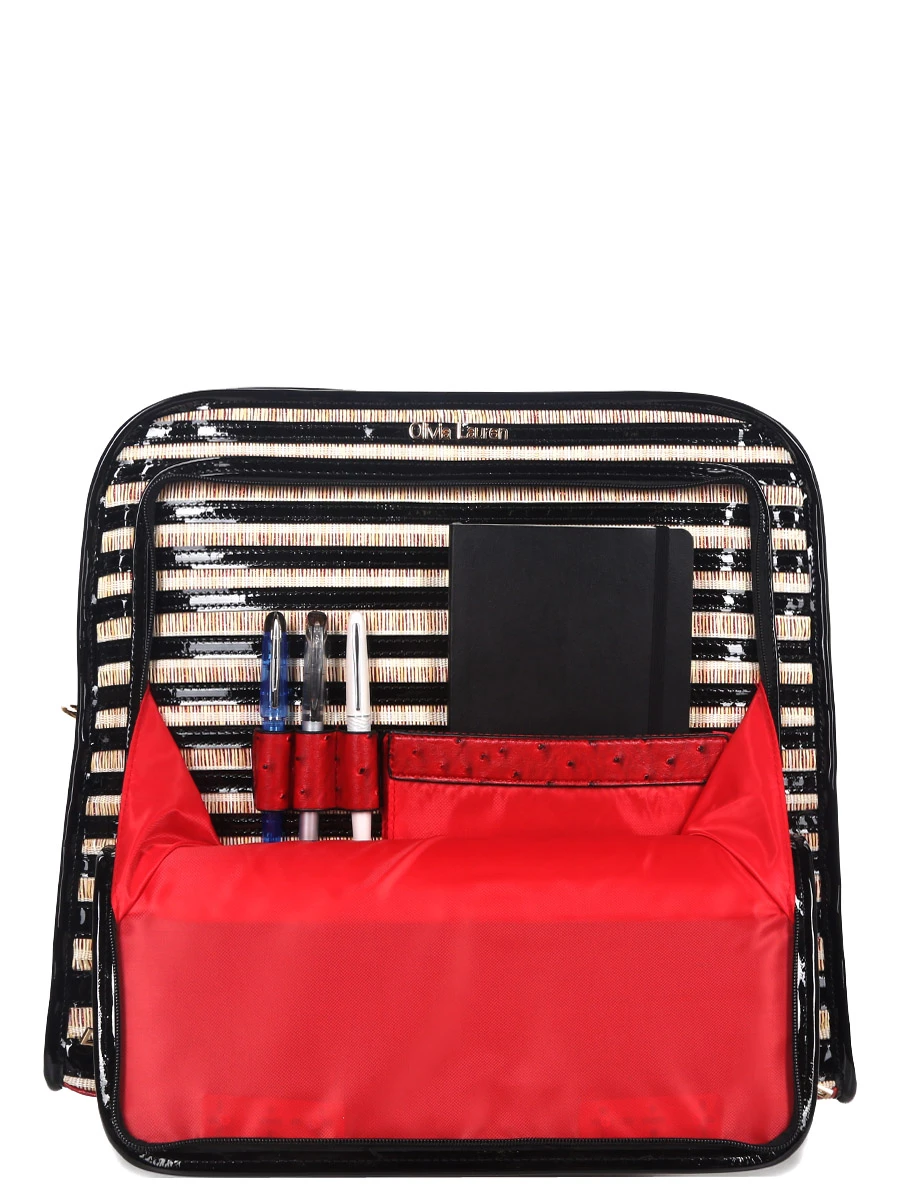 Le pilot case Olivia Lauren Stripes 11 pouces est un véritable accessoire de mode. Conçu pour accompagner les femmes dans leurs déplacements de tous les jours et notamment en voyage d’affaires, ce sac allie style, confort et praticité. Avec son mix de revêtement à rayures et façon cuir d’autruche, il assure un look audacieux et contemporain. Il dispose d’une fabrication solide en polyuréthane. Son agencement intérieur permet de ranger un maximum de documents et d’affaires personnelles avec organisation.
