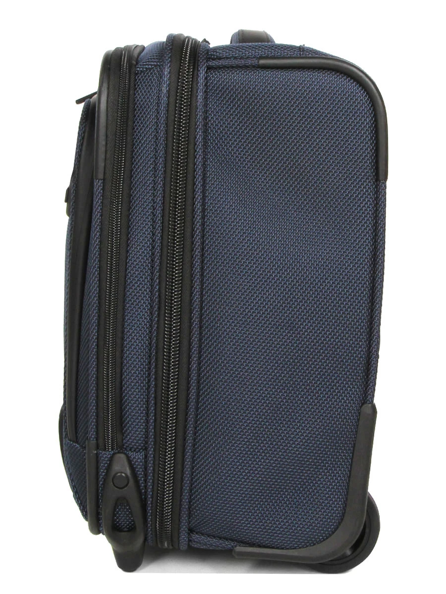 Le pilot case Travelite Meet se tracte aisĂ©ment Ă l’aide de son trolley double canne Ă position rĂ©glable et de ses 2 solides roulettes. Si l’on prĂ©fère, il peut ĂŞtre tenu Ă la main par sa large poignĂ©e haute moussĂ©e. Pour encore plus de praticitĂ©, il est Ă©galement muni d’un passant pour trolley permettant de le fixer sur la poignĂ©e tĂ©lescopique d’une valise, par exemple. Pour Ă©viter une usure prĂ©maturĂ©e de son revĂŞtement, il est dotĂ© de renforts de protection. Enfin, ses curseurs percĂ©s permettent l’emploi d’un cadenas (non fourni) quand la nĂ©cessitĂ© se fait sentir.