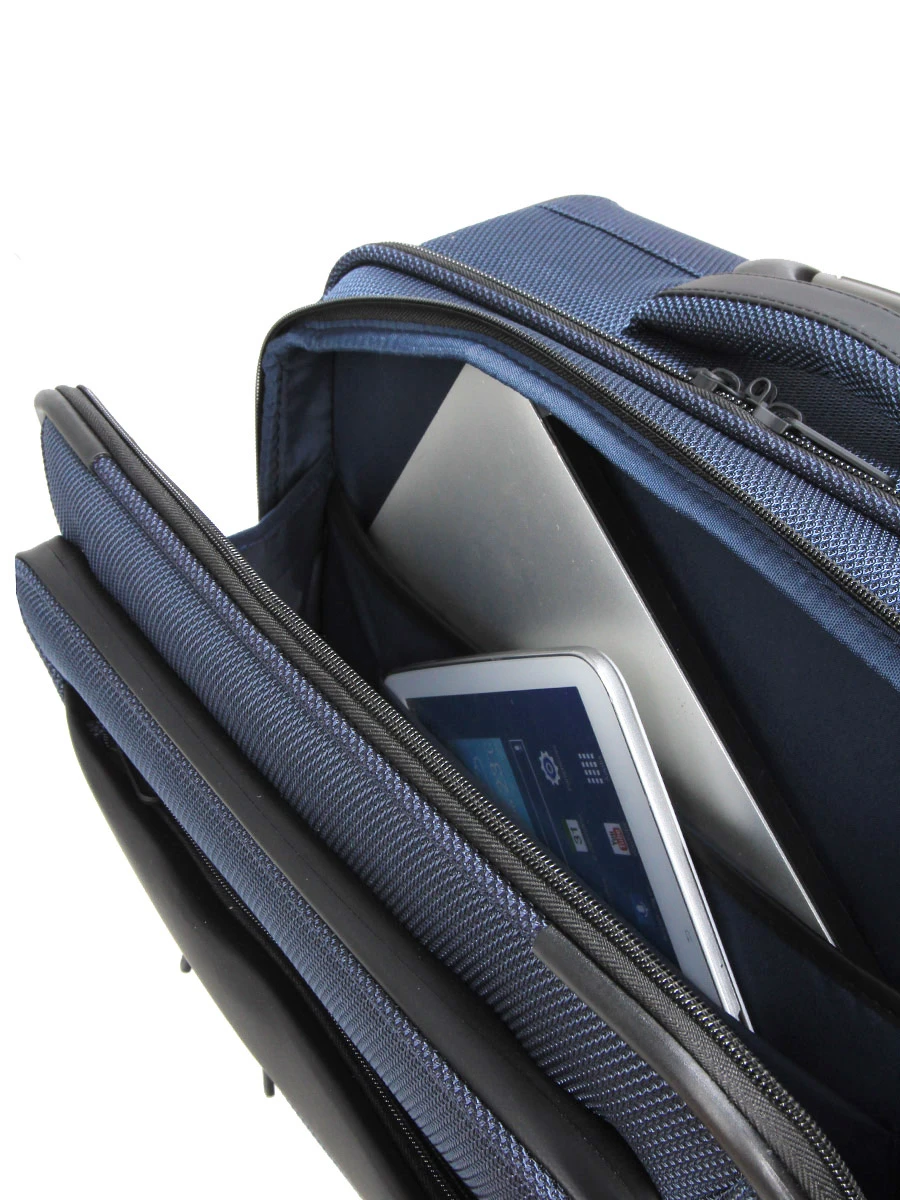 Pratique, dans ce second compartiment, il est possible de glisser une housse zippĂ©e permettant de ranger avec soin un peu de linge. Les fournitures de bureau peuvent quant Ă elles ĂŞtre entreposĂ©es dans sa grande poche intĂ©rieure zippĂ©e. A l’avant, 3 poches zippĂ©es permettent de garder accessibles les effets personnels les plus importants. Dans la plus grande, une poche anti-RFID et une attache porte clĂ©s constituent des options de rangement complĂ©mentaires.