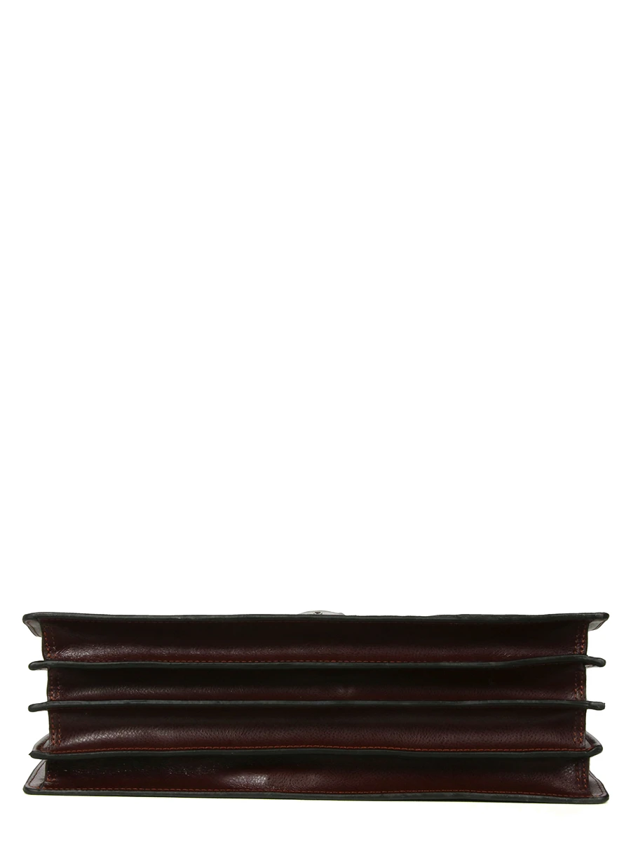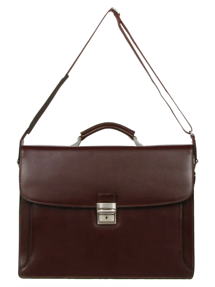 Ce cartable Gérard Hénon Atout offre, en sus, des équipements pratiques pour le transporter confortablement : une poignée de portage supérieure, ainsi qu’une bandoulière ajustable, amovible et renforcée en cuir. Ces accessoires offrent la possibilité de le déplacer manuellement ou bien à l’épaule/en travers. Il se ferme à l’aide d’un rabat en cuir et d’une attache à serrure à clé pour plus de sécurité.