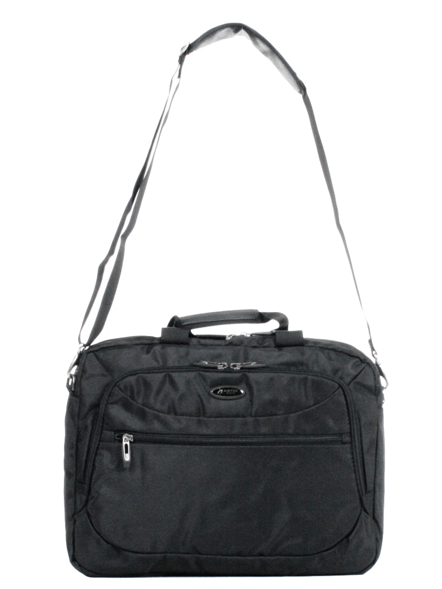 Pour transporter les affaires tout en confort, cette sacoche ordinateur Airtex Business dispose d’une bandoulière ajustable, amovible et renforcée, laquelle permet de la déplacer à l’épaule ou en travers. On trouve également 2 poignées de portage sur le dessus, ainsi qu’un passant compatible trolley, situé au dos. Ce sac utilise un système à glissière pour s’ouvrir et se fermer.